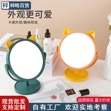 猫耳朵化妆镜子台式卡通单面梳妆镜宿舍桌面美容镜高清旋转公主镜