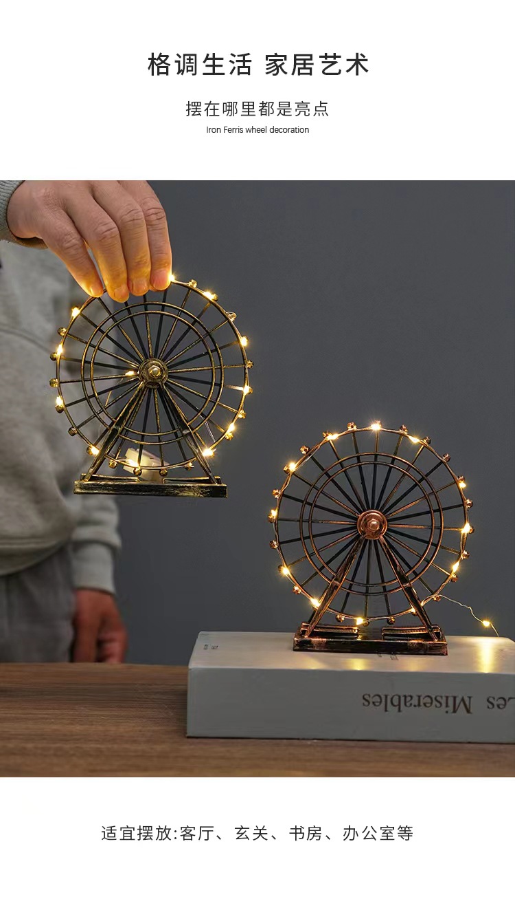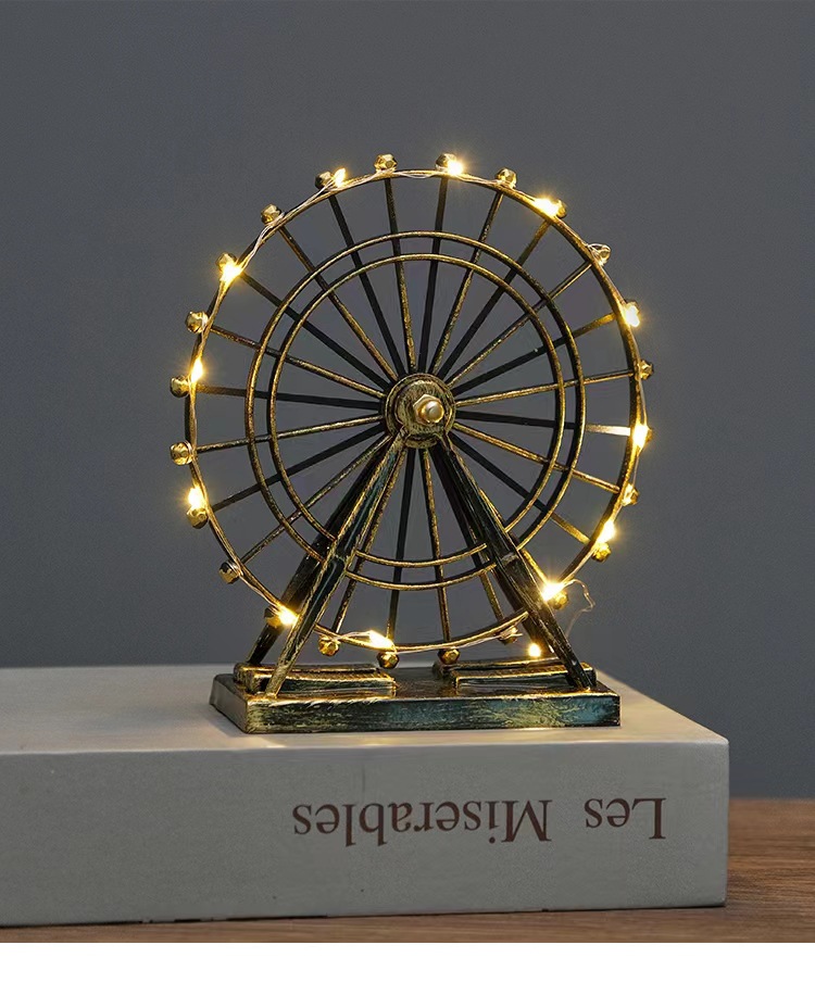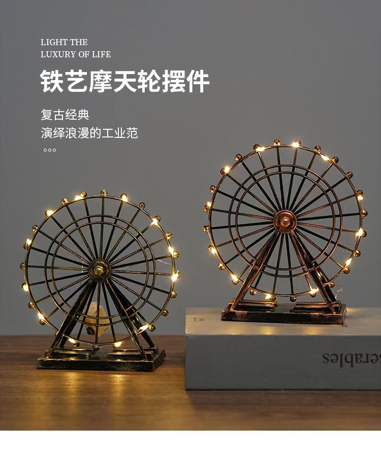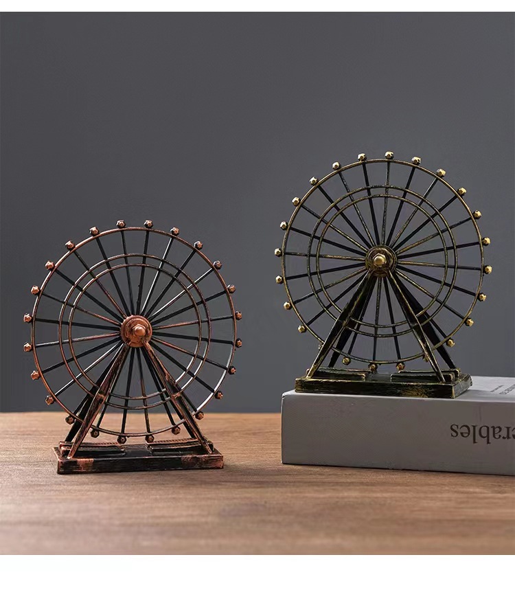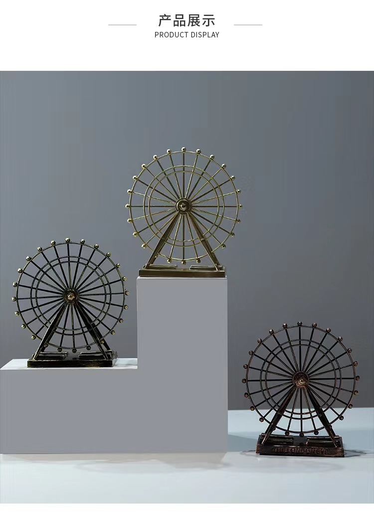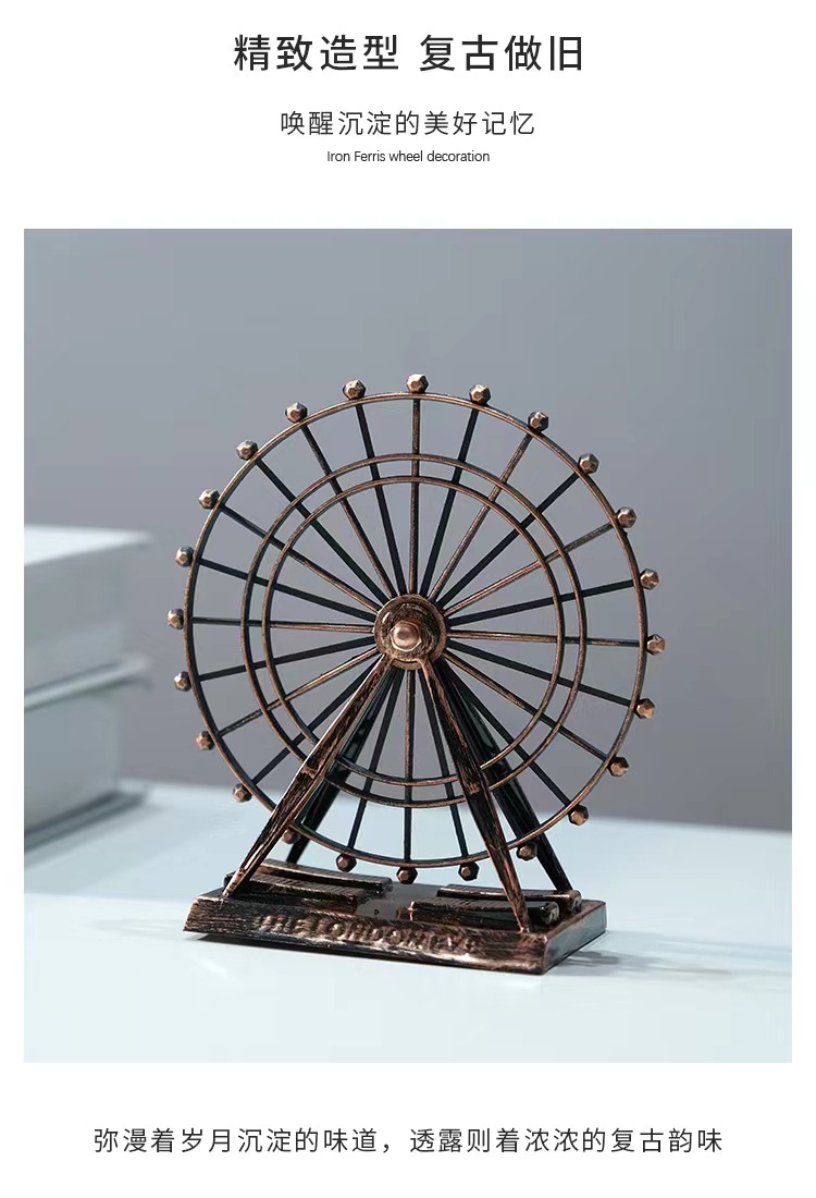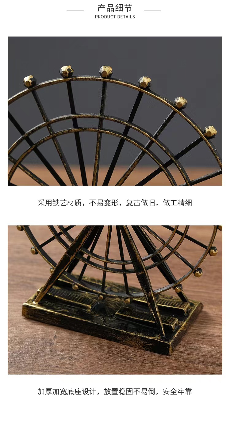 유럽식 복고풍 단철 오래된 공예 관람차 모델 창조적 인 가정 거실 와인 캐비닛 장식 장식