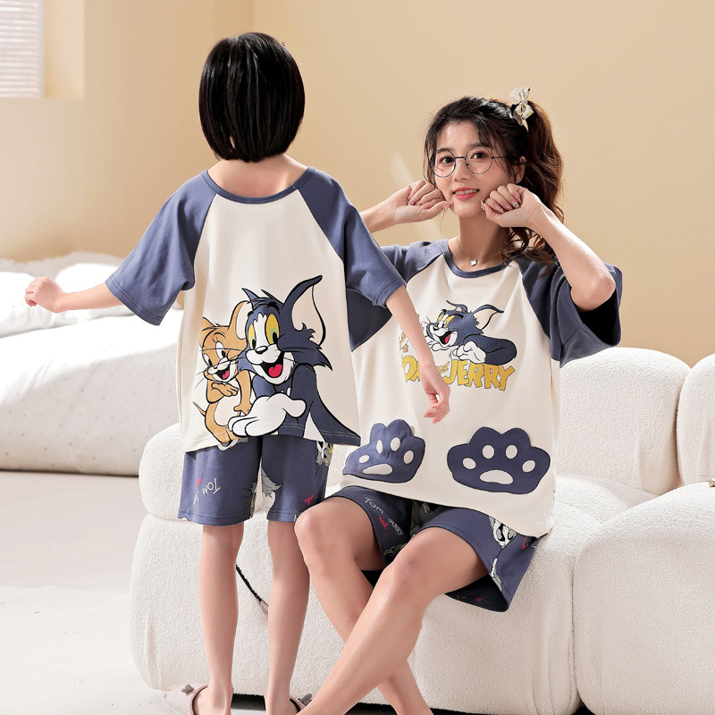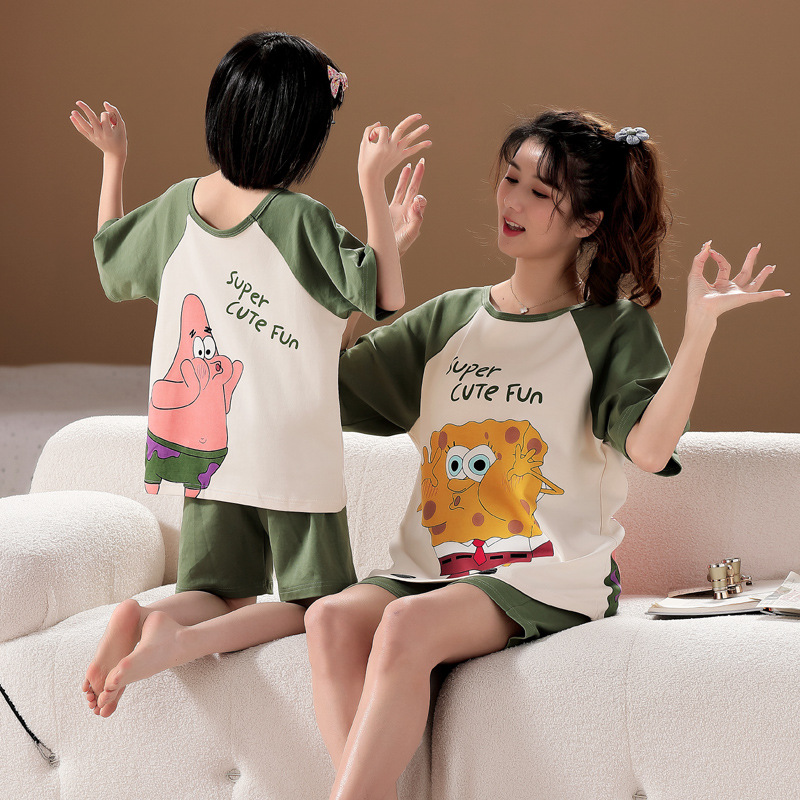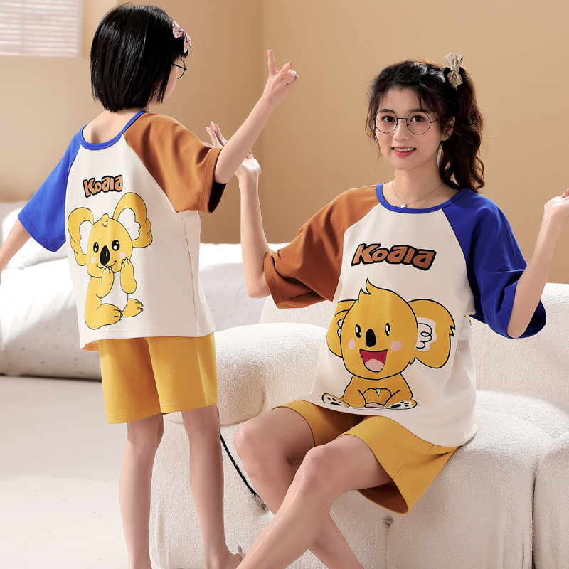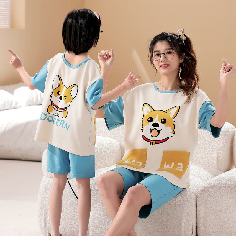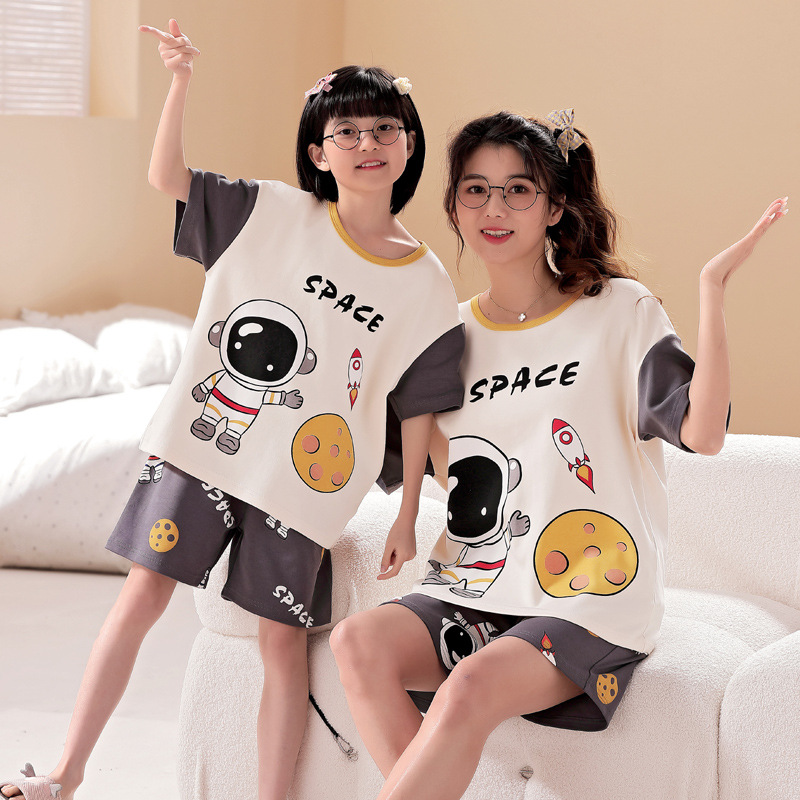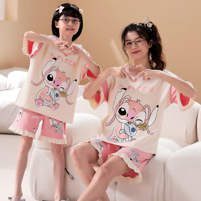 여아 잠옷 여름 반팔 파린 아동 의류 어머니와 딸 순면 아기 소녀 귀여운 어린이 가정 옷 세트
