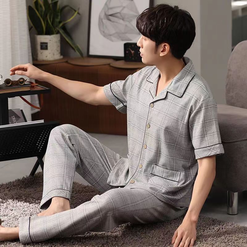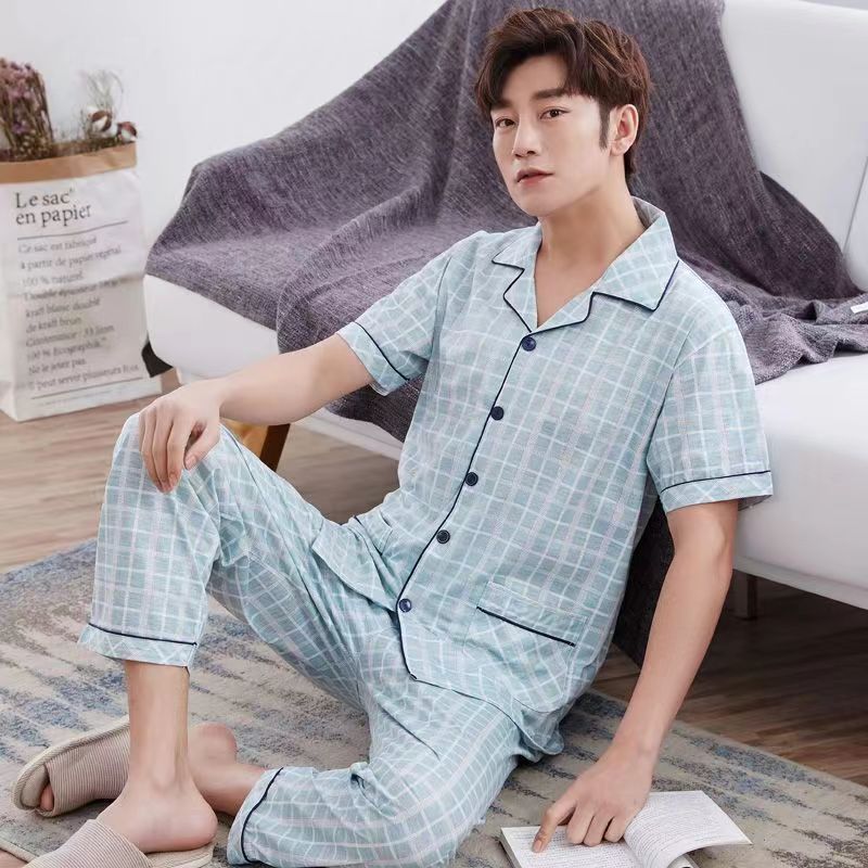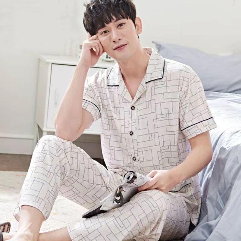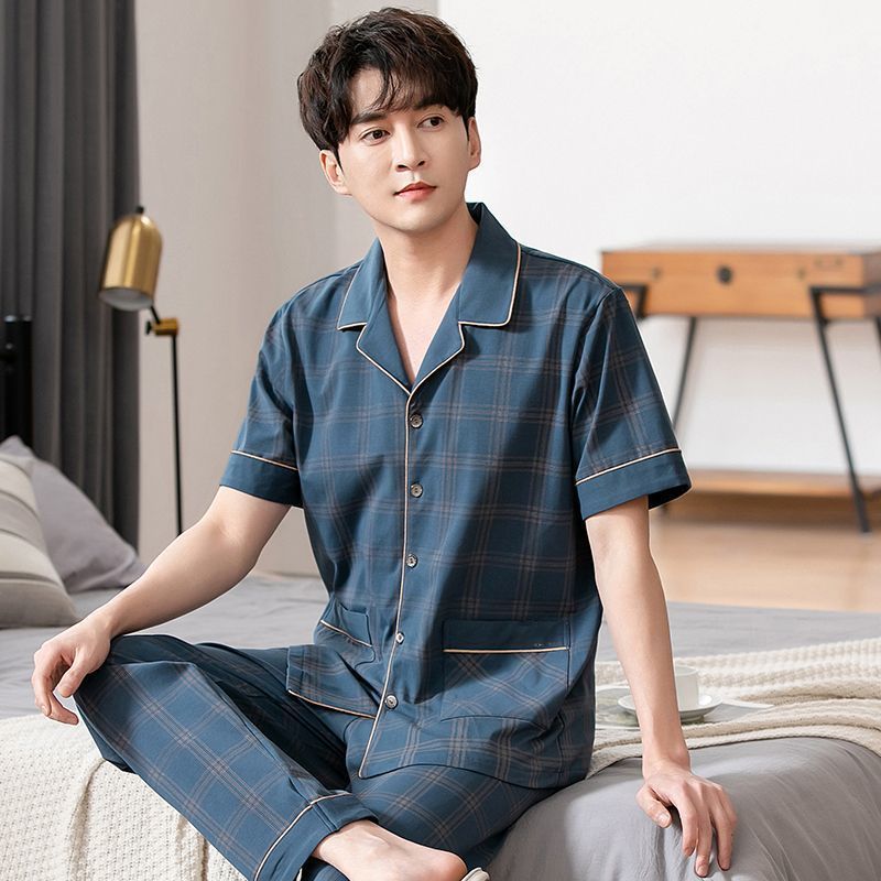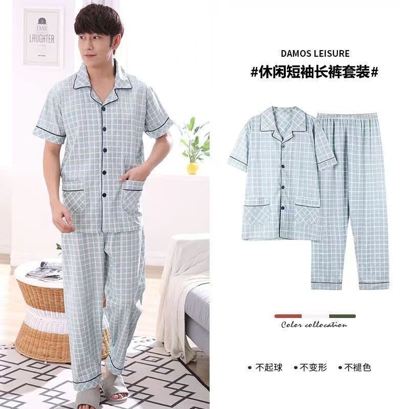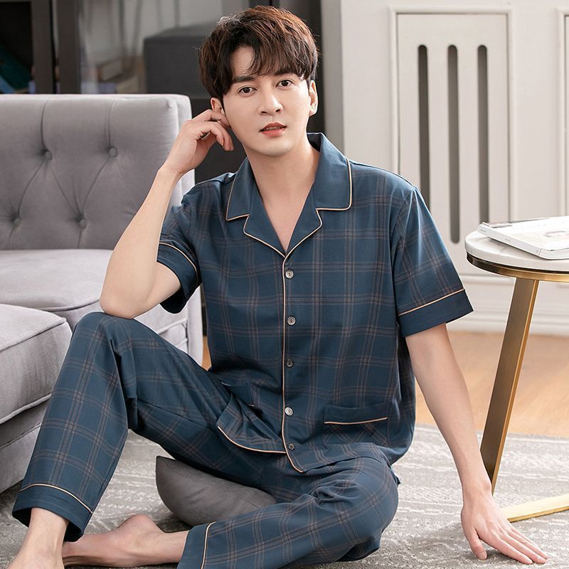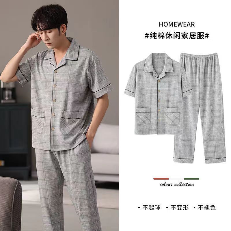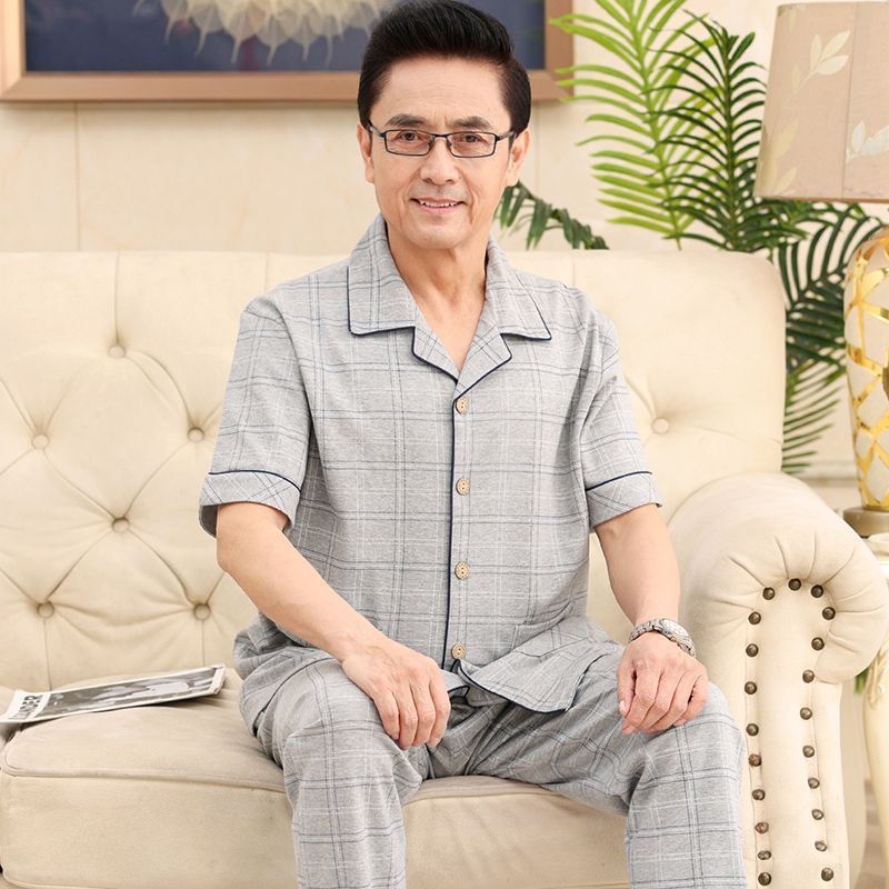 남자 잠옷 여름 반팔 바지 중년 아빠 남자 2023 새로운 대형 홈 의류 얇은 세트스토어 가기
