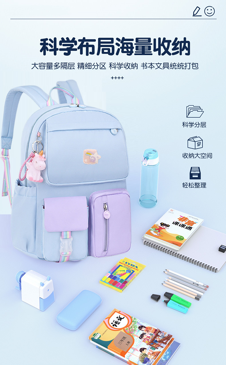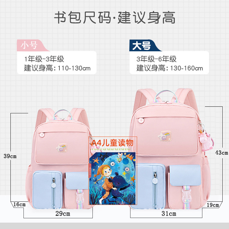 새로운 냉장고 스타일 초등학생 여학생 책가방 1, 3, 6학년 여아 만화 어린이 척추 보호 및 부담 감소 백팩스토어 가기