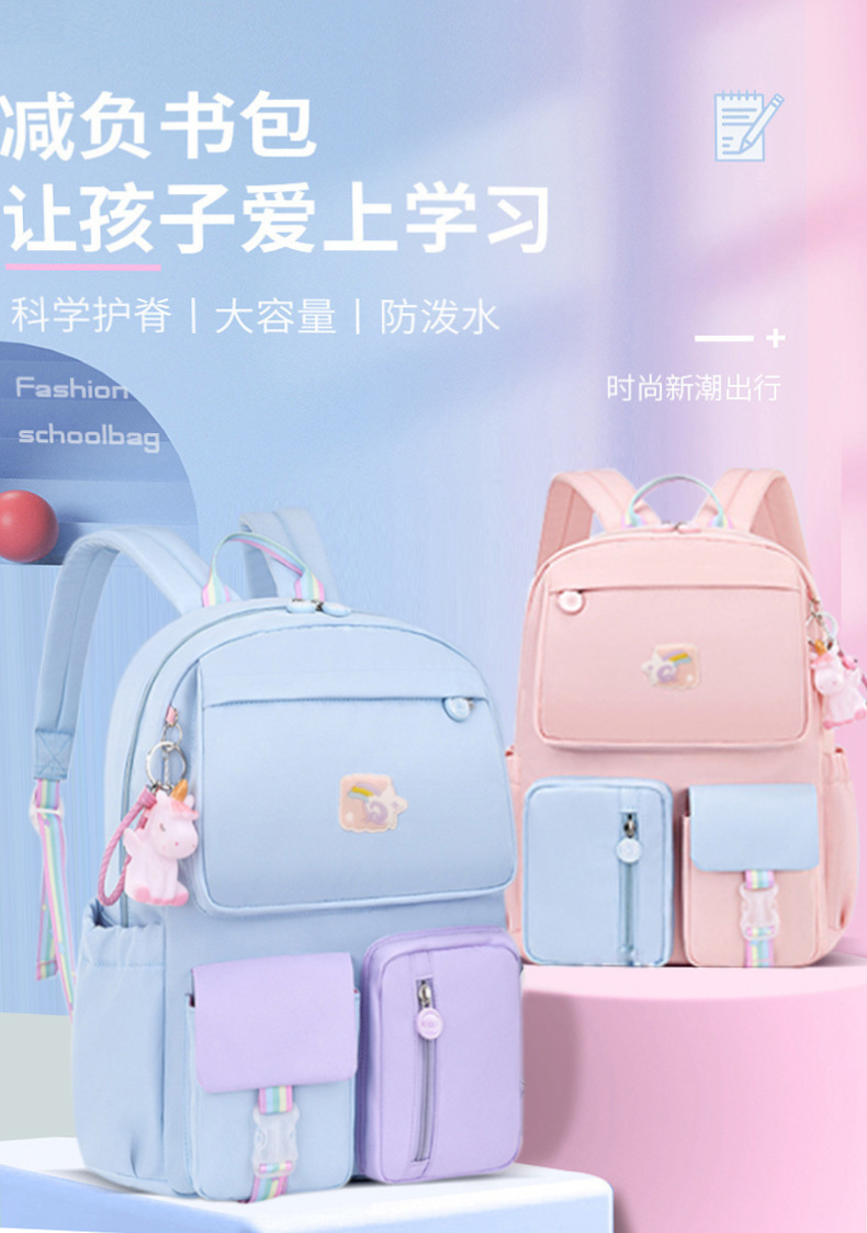 새로운 냉장고 스타일 초등학생 여학생 책가방 1, 3, 6학년 여아 만화 어린이 척추 보호 및 부담 감소 백팩