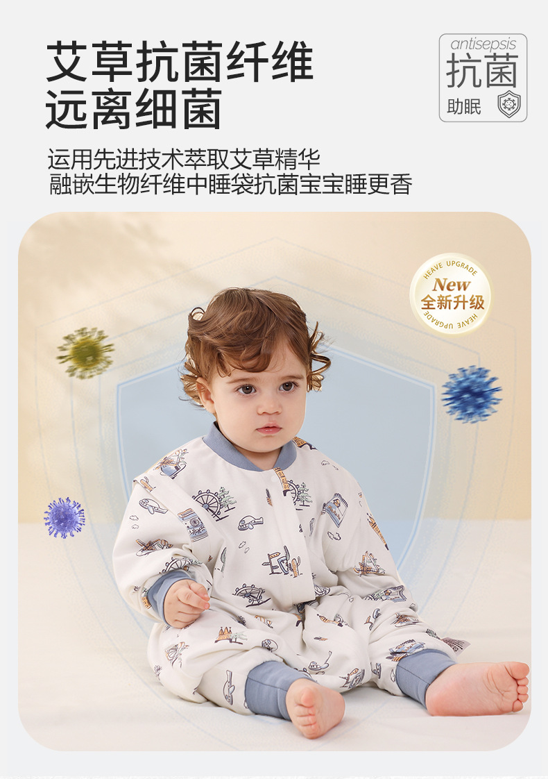 어린이 유아용 다리가 펼쳐지는 수면조끼, 봄과 가을용, 쑥 항균 이중 순면, 어린이 발차기 방지 이불, 아기 사계절용스토어 가기