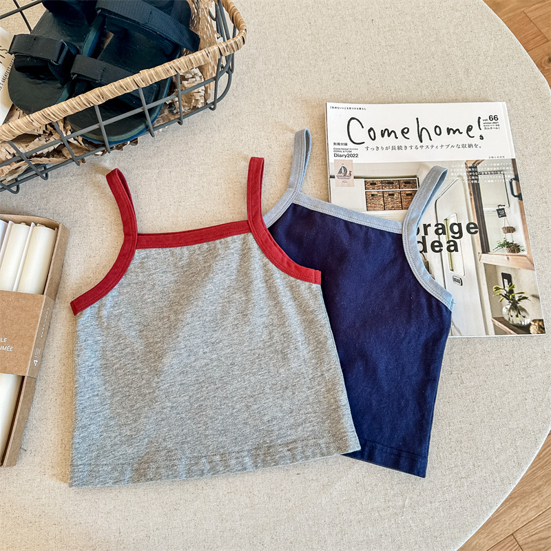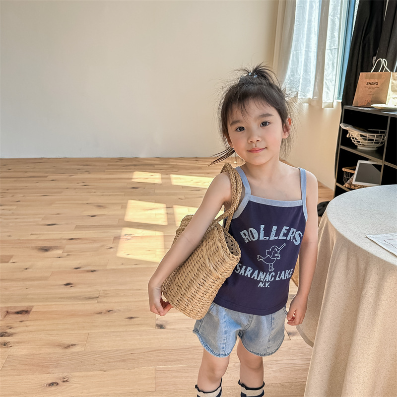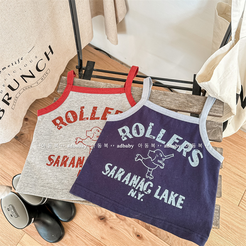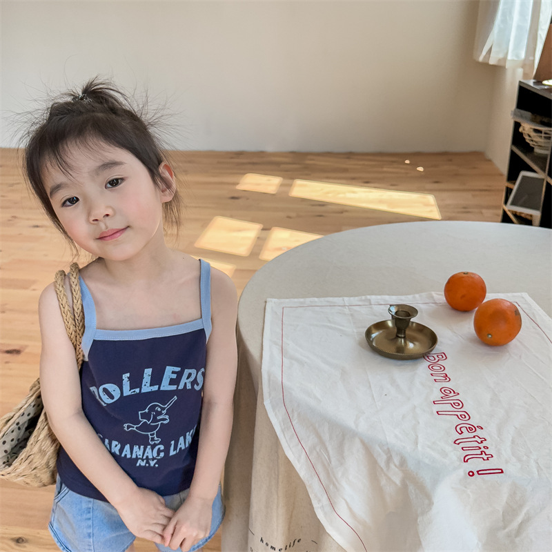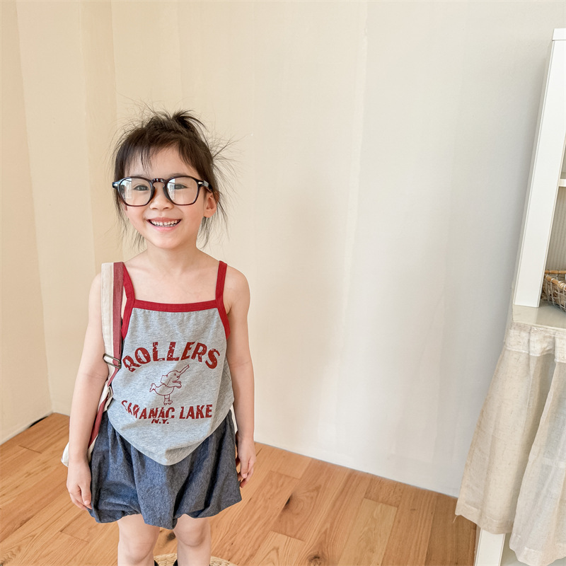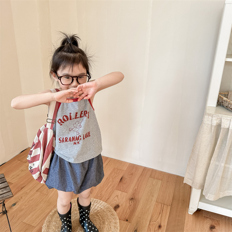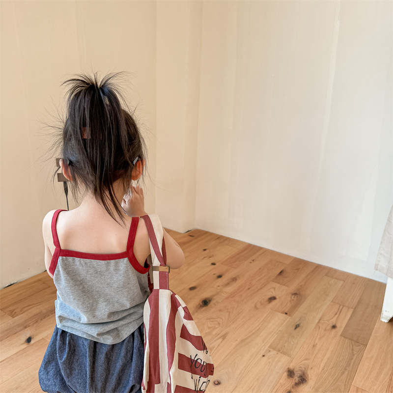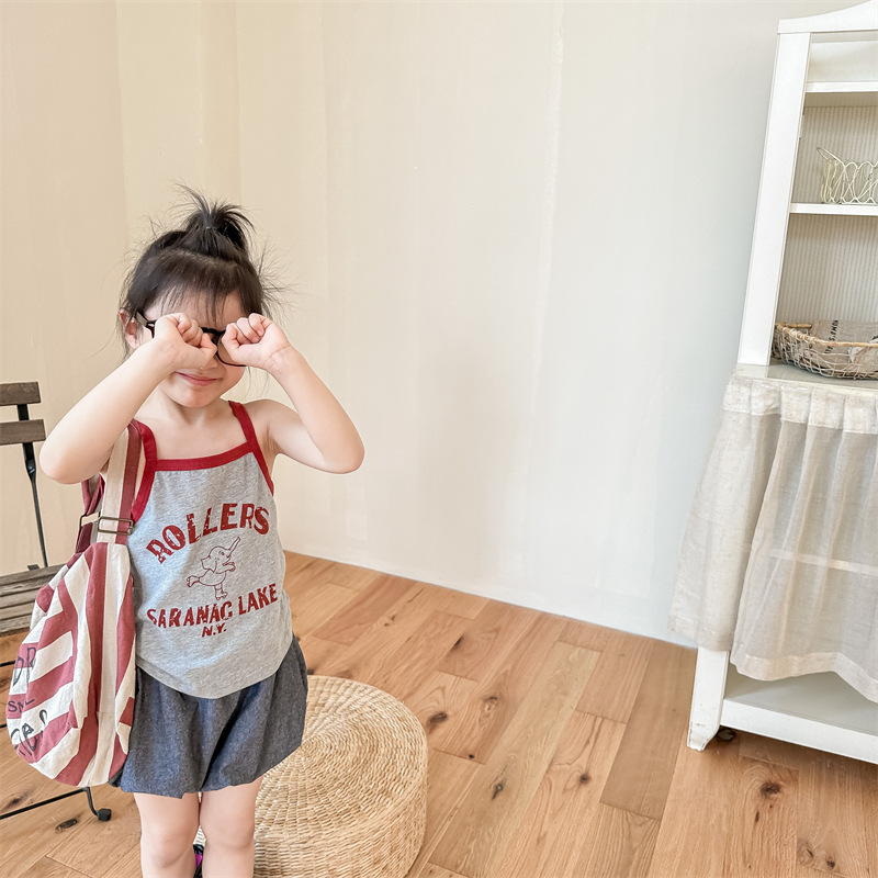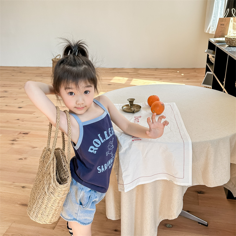 2025 아동복 여름 새 여자 한국 스타일 민소매 캐미 티셔츠 바닥 셔츠 123230