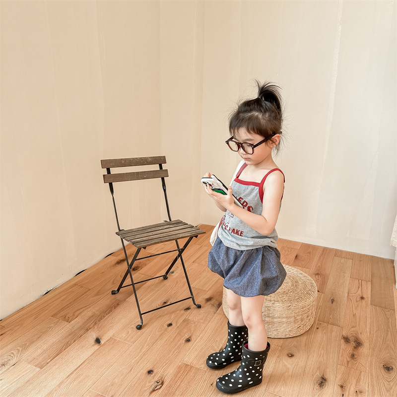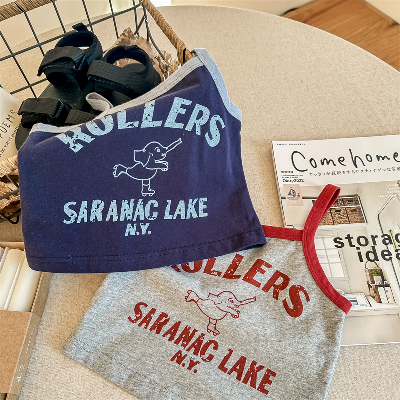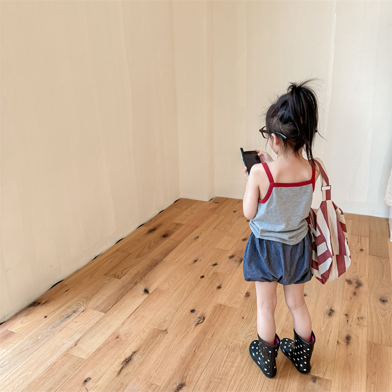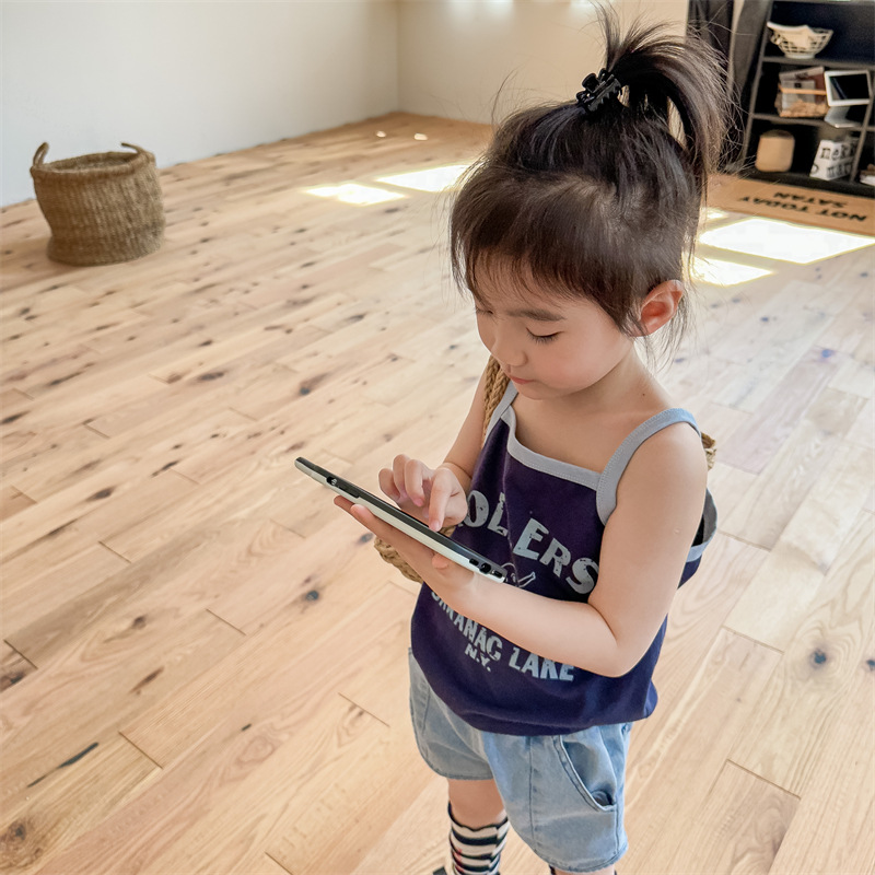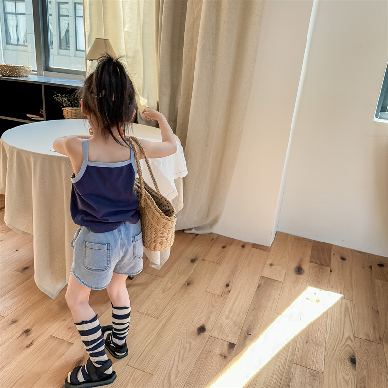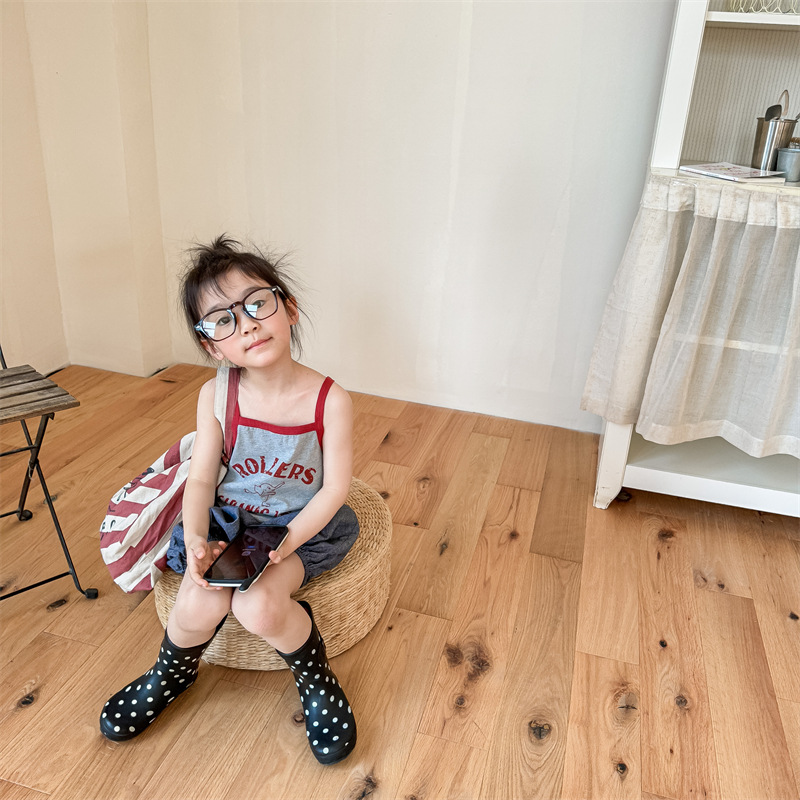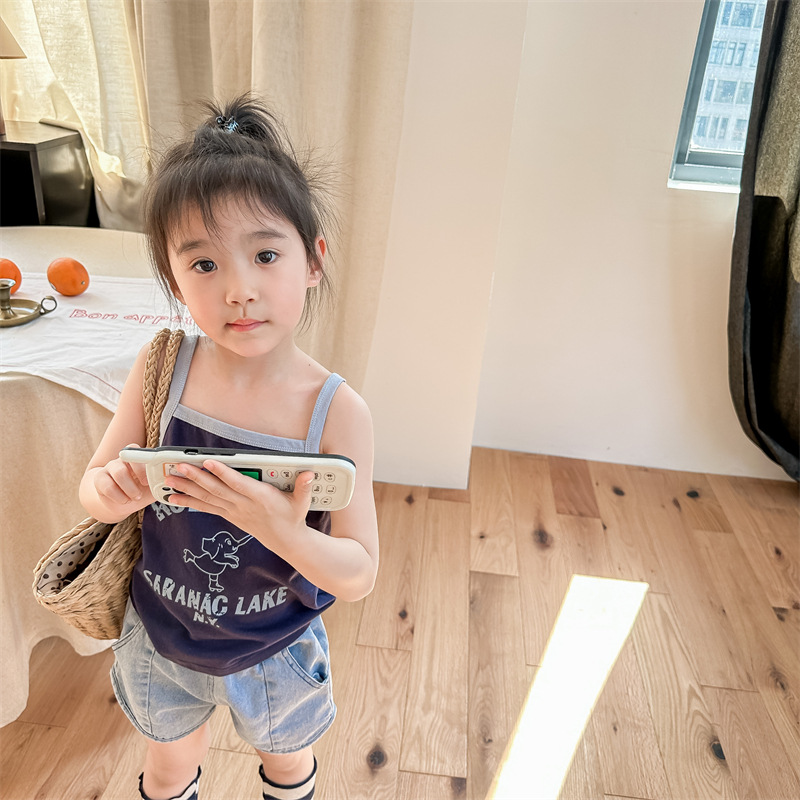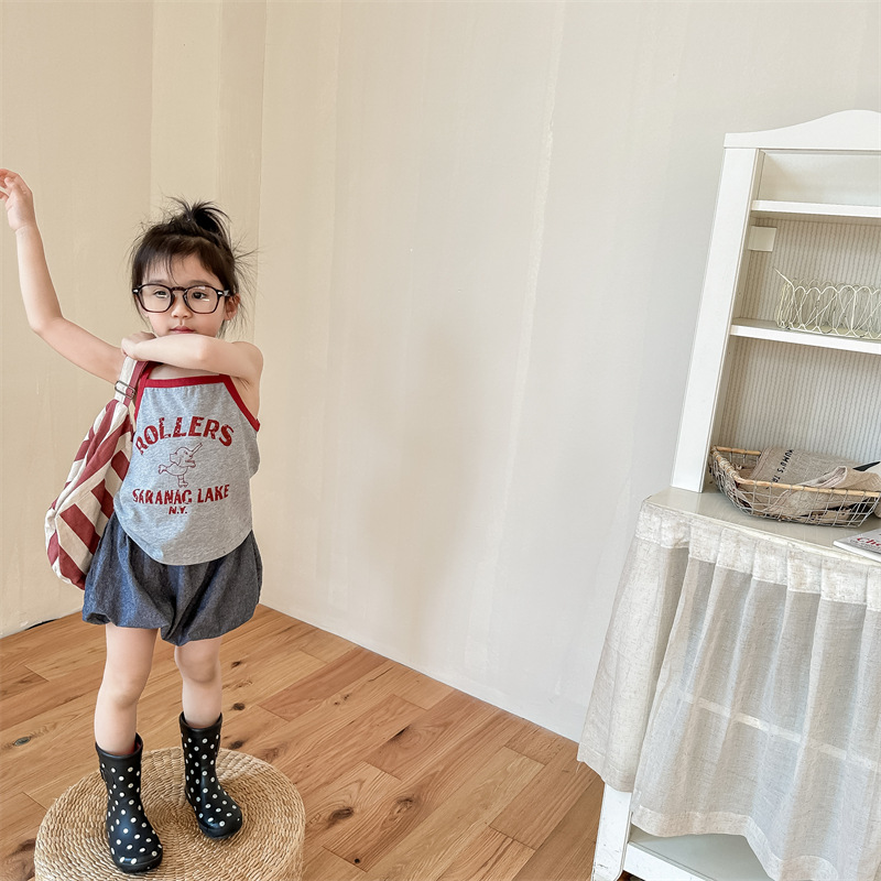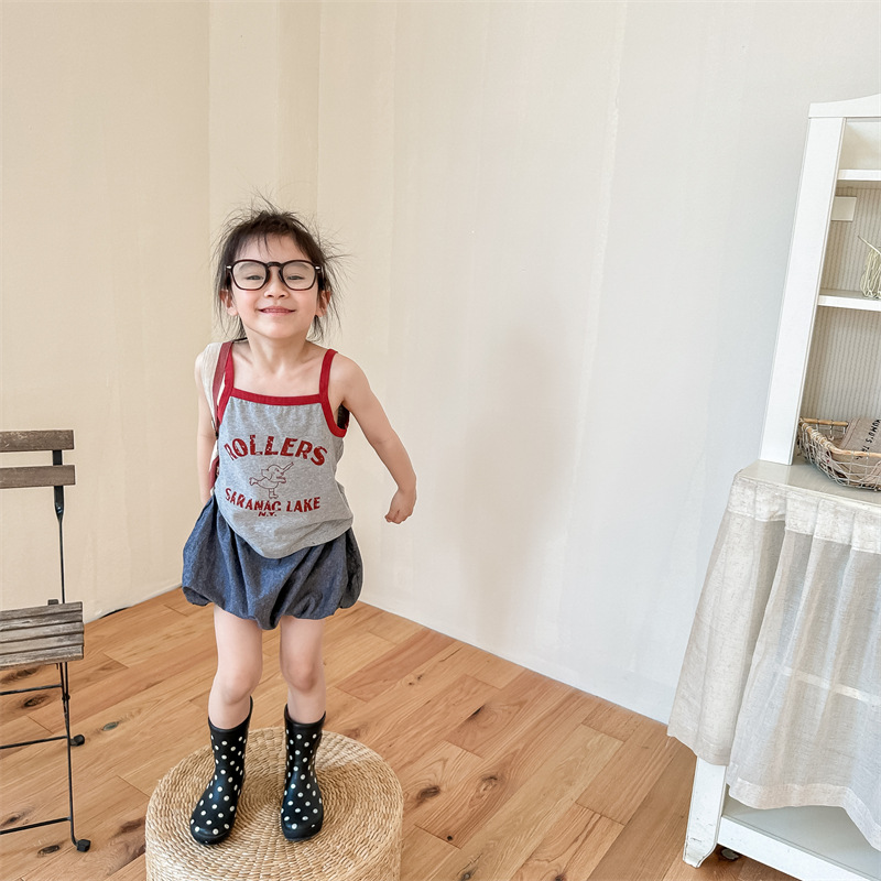 2025 아동복 여름 새 여자 한국 스타일 민소매 캐미 티셔츠 바닥 셔츠 123230