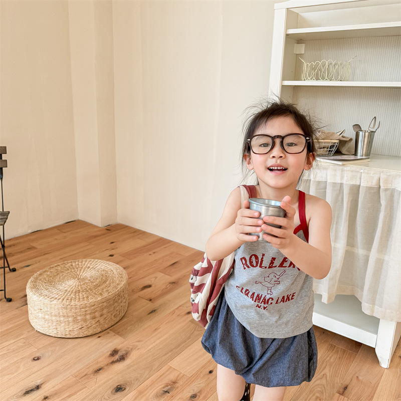 2025 아동복 여름 새 여자 한국 스타일 민소매 캐미 티셔츠 바닥 셔츠 123230스토어 가기