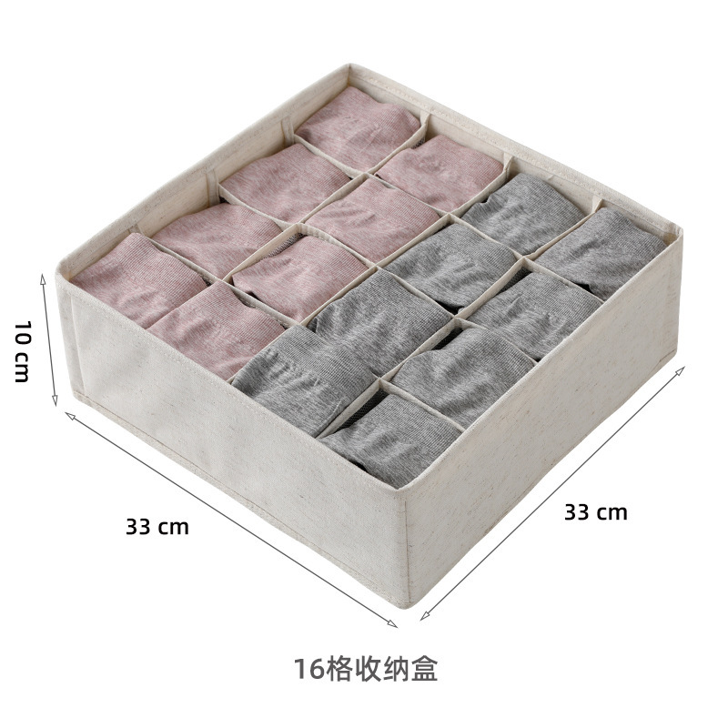 Tianshan 면 린넨 보관함 패브릭 접이식 양말 속옷 브래지어 마무리 상자 홈 워싱 속옷 보관함