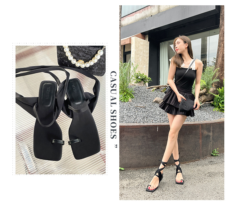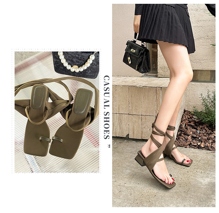 2025년 신상 여성용 샌들, 요정 스타일, 스커트와 잘 어울리는 토캡 디자인, 다용도 끈 장식, 스퀘어 토, 중간 굽, 로마 스타일스토어 가기