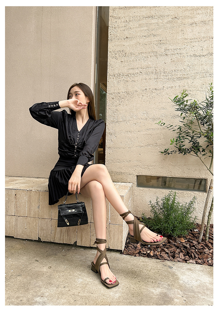 2025년 신상 여성용 샌들, 요정 스타일, 스커트와 잘 어울리는 토캡 디자인, 다용도 끈 장식, 스퀘어 토, 중간 굽, 로마 스타일