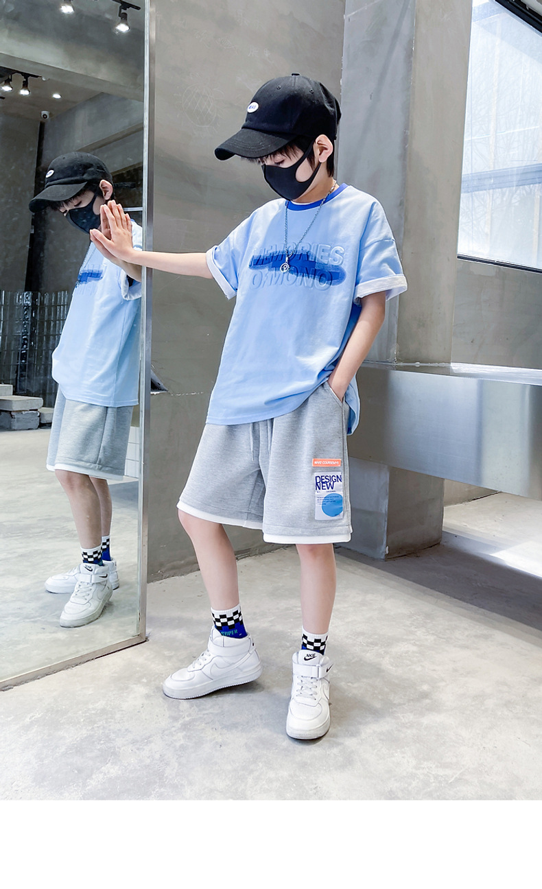 아동복 남아 여름 반팔 개성있는 세트 2026 신상 중대형 아동 스포츠 여름 얇은 투피스 세트