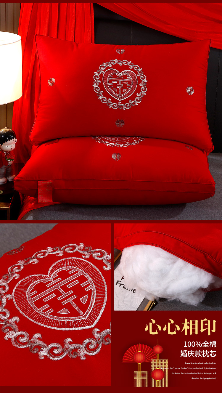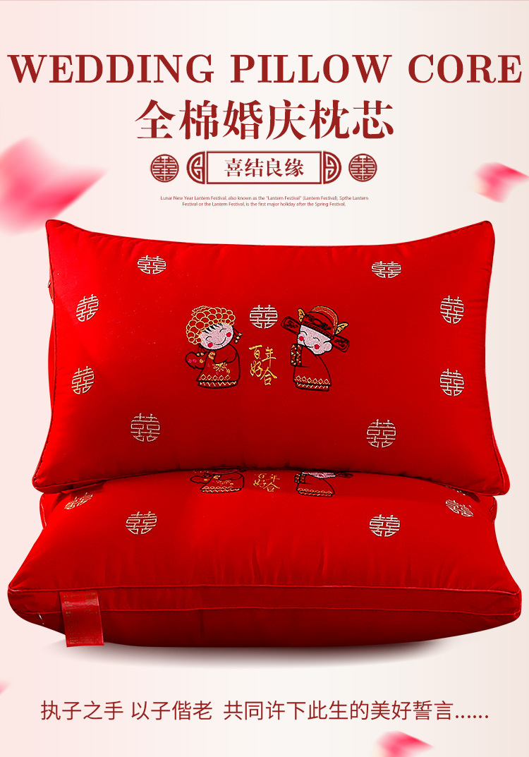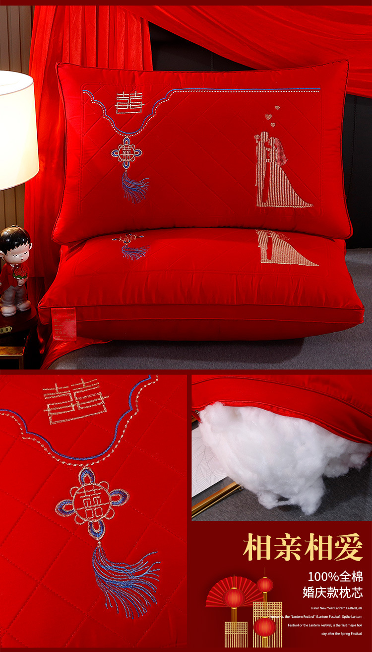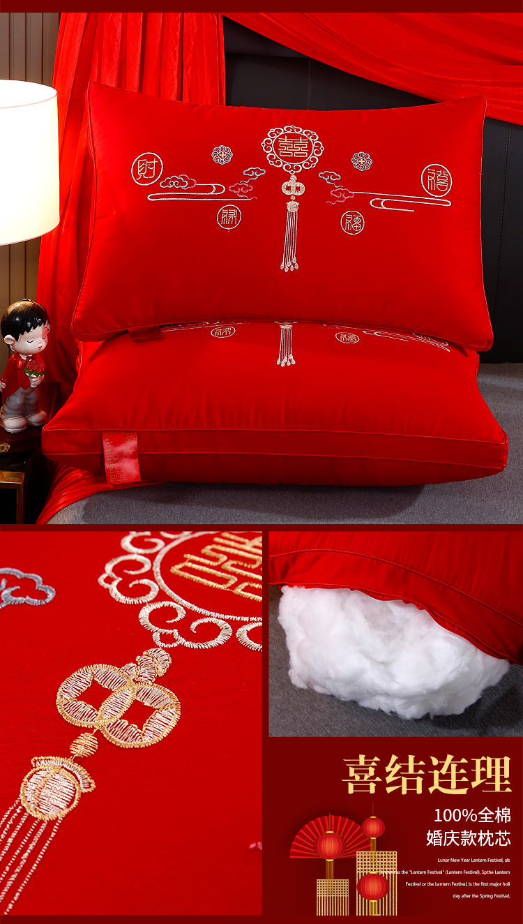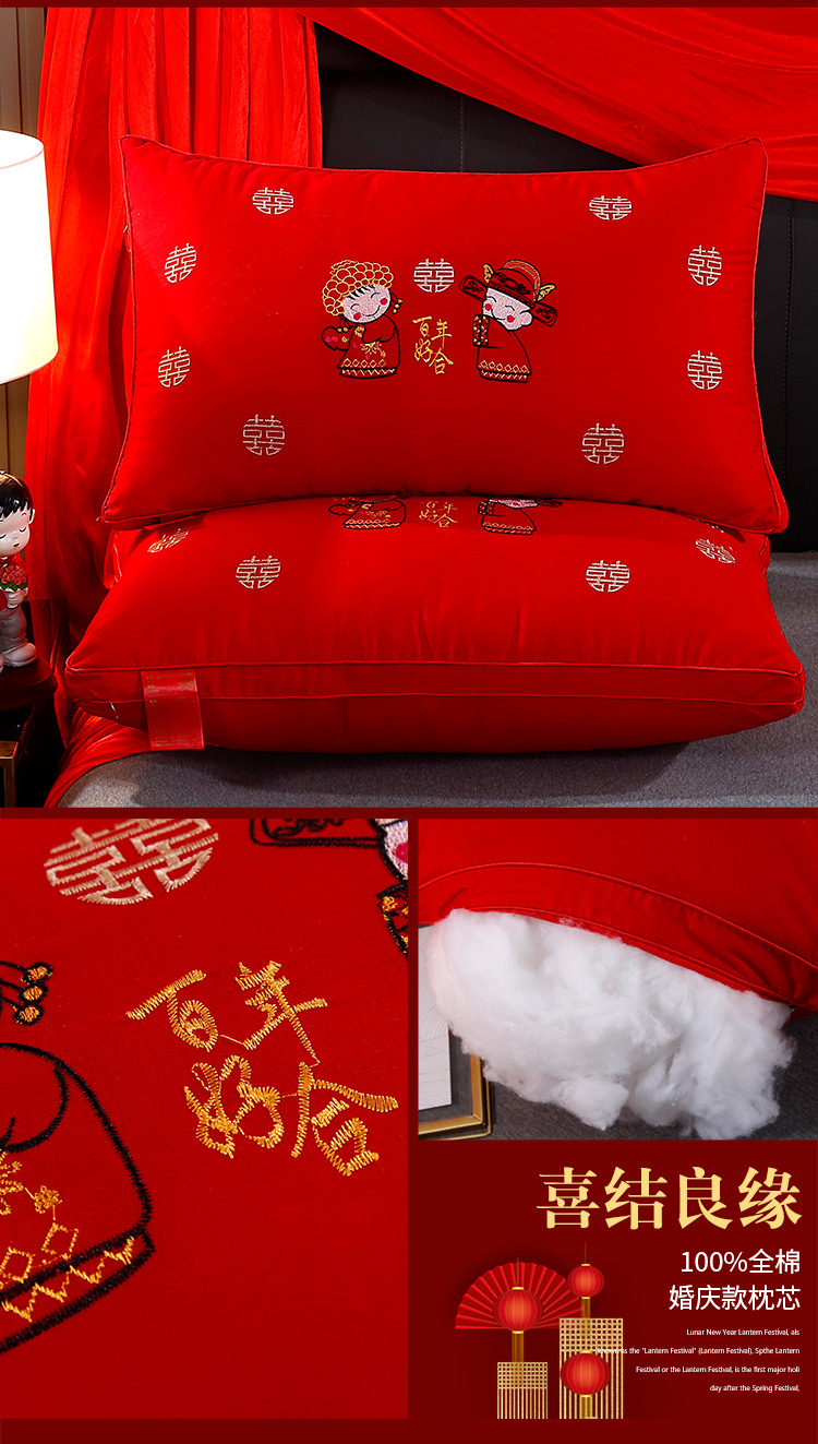 순면 자수 베개심, 더블 행복문자, 순면 베개, 깃털 베개, 부드러운 베개, 결혼 선물, 가정용, 축제용