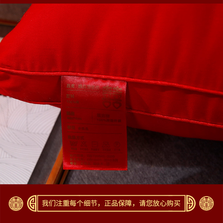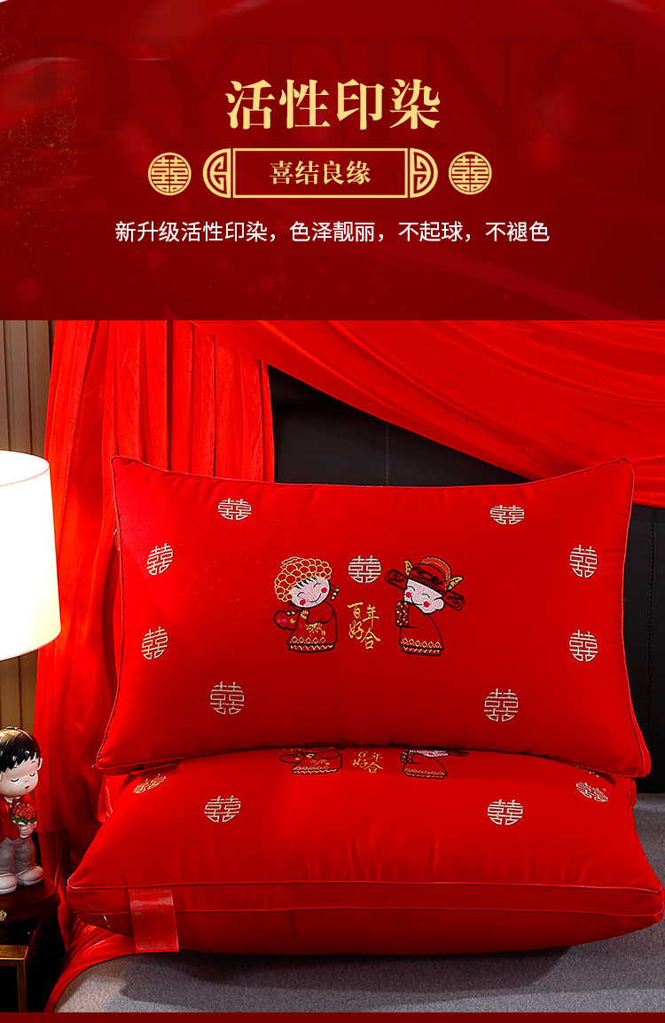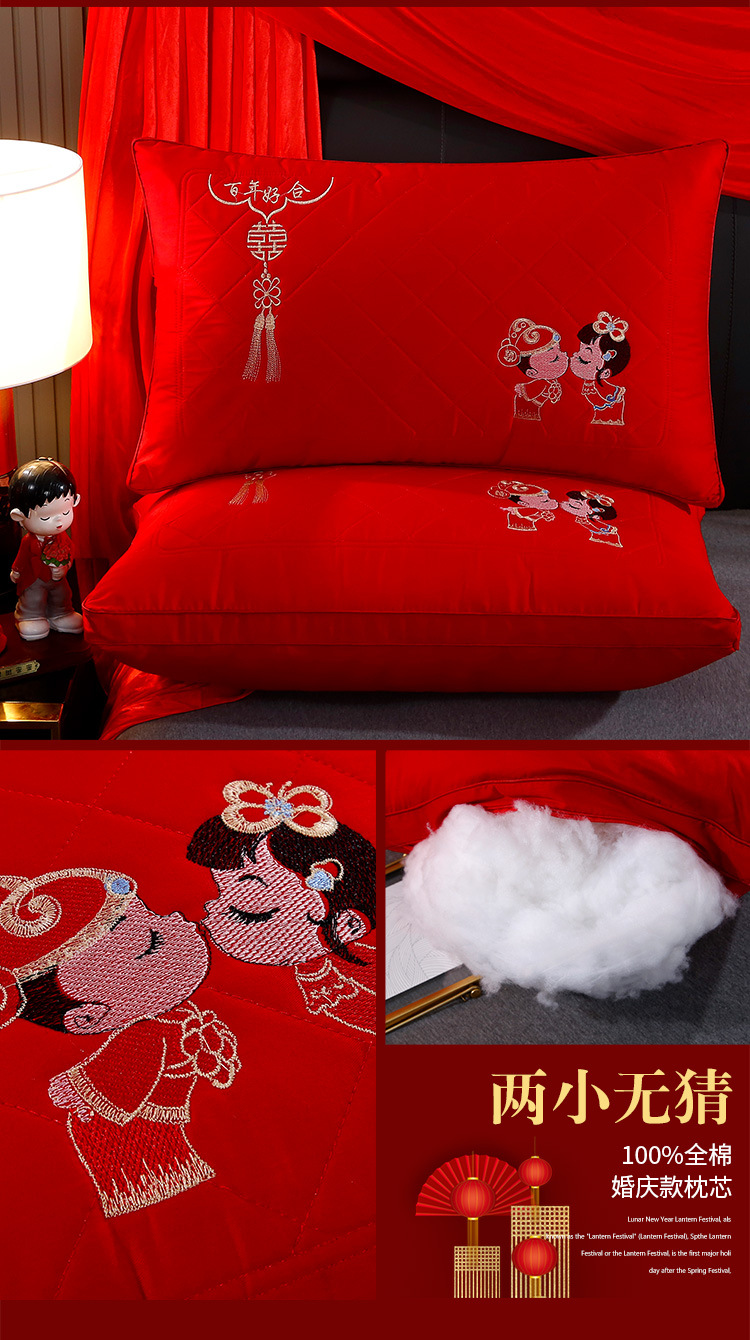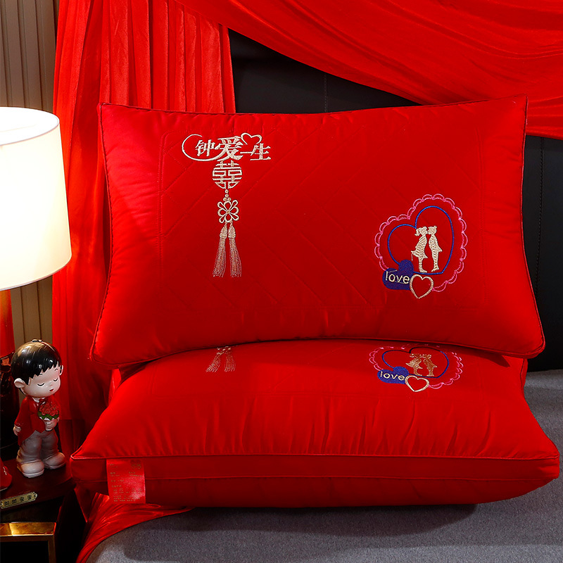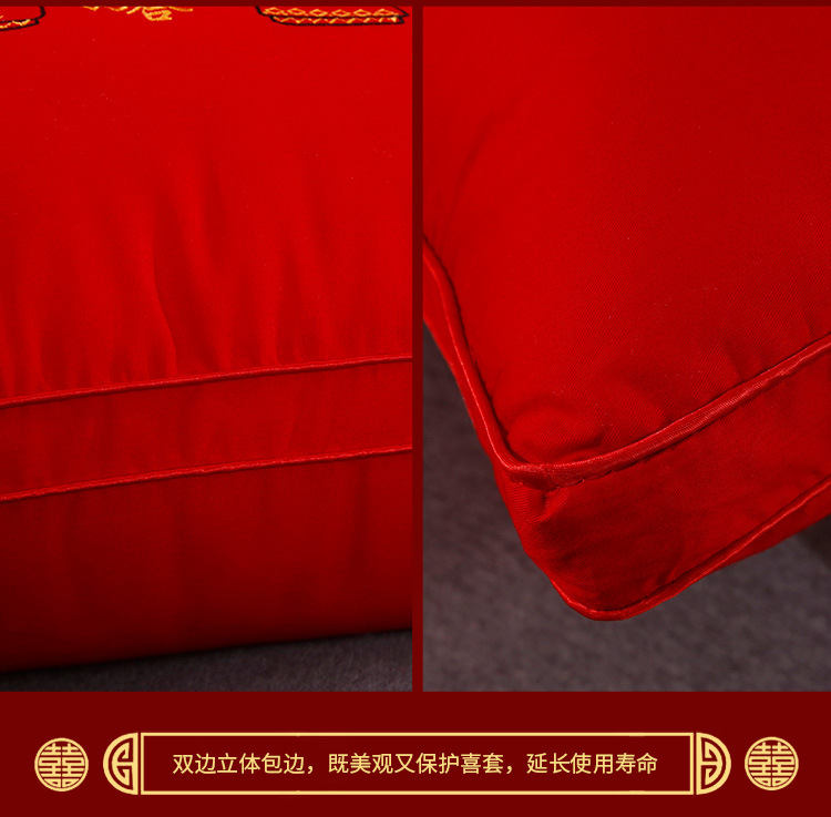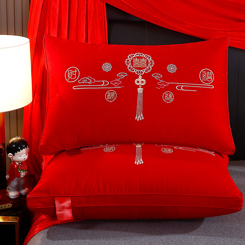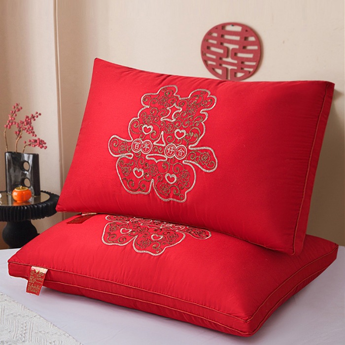 순면 자수 베개심, 더블 행복문자, 순면 베개, 깃털 베개, 부드러운 베개, 결혼 선물, 가정용, 축제용