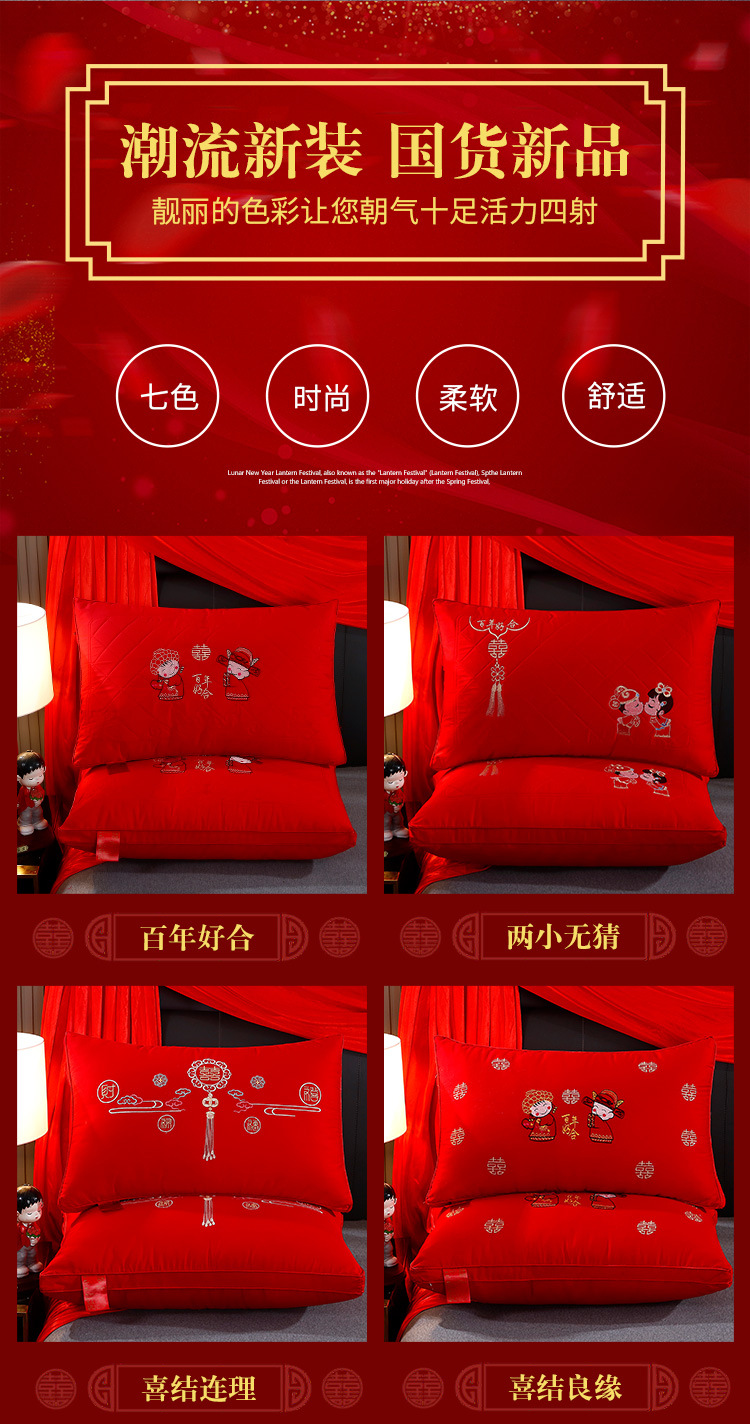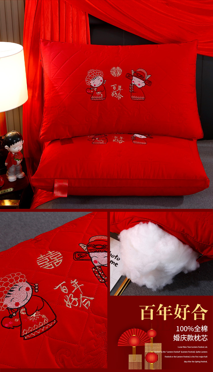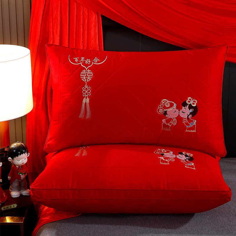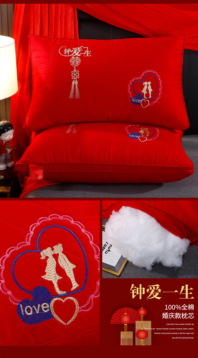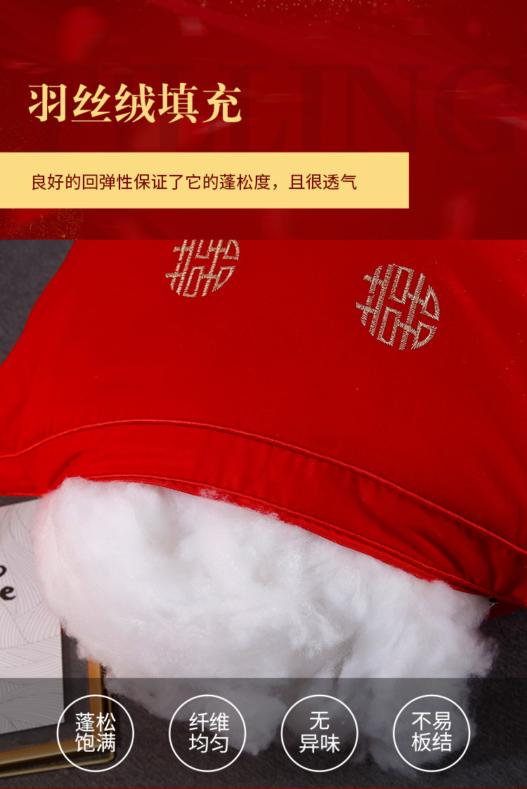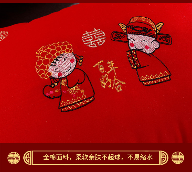 순면 자수 베개심, 더블 행복문자, 순면 베개, 깃털 베개, 부드러운 베개, 결혼 선물, 가정용, 축제용