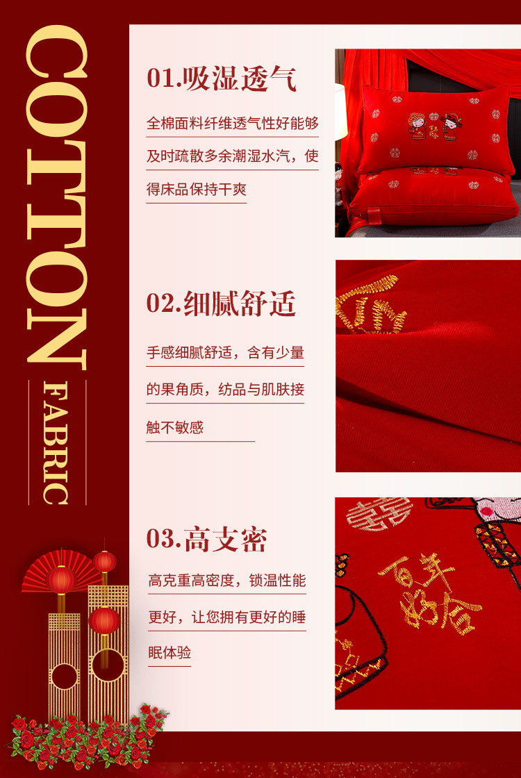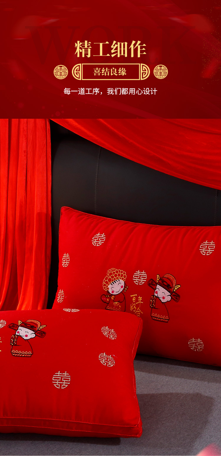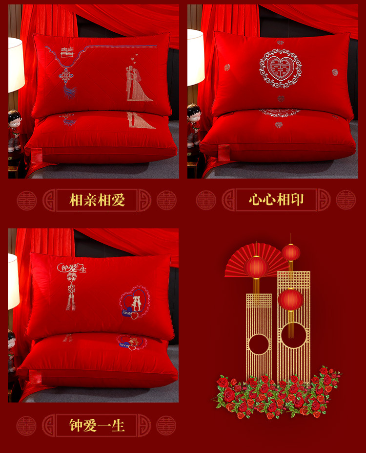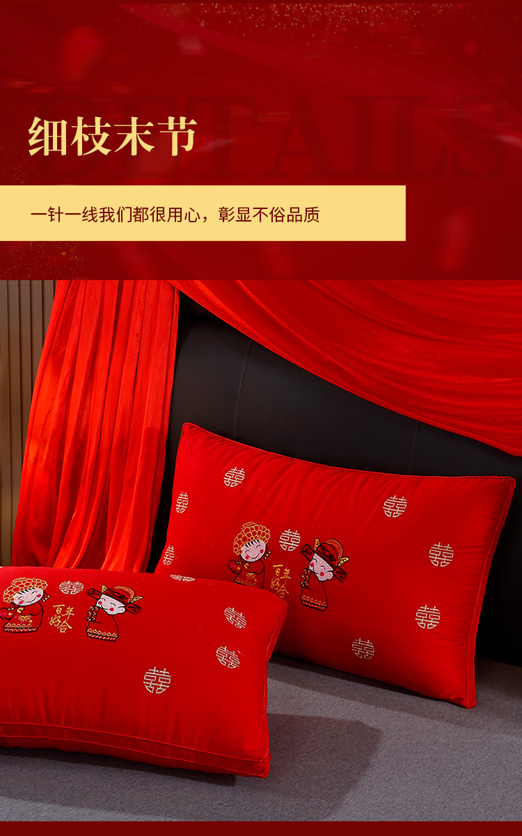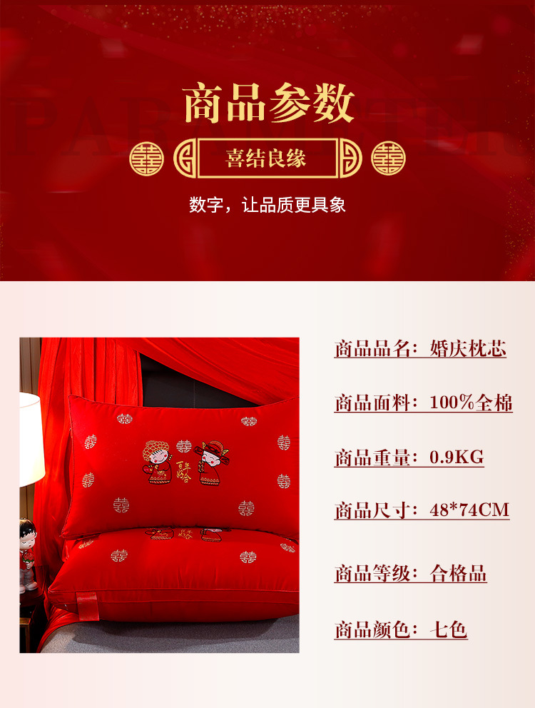 순면 자수 베개심, 더블 행복문자, 순면 베개, 깃털 베개, 부드러운 베개, 결혼 선물, 가정용, 축제용