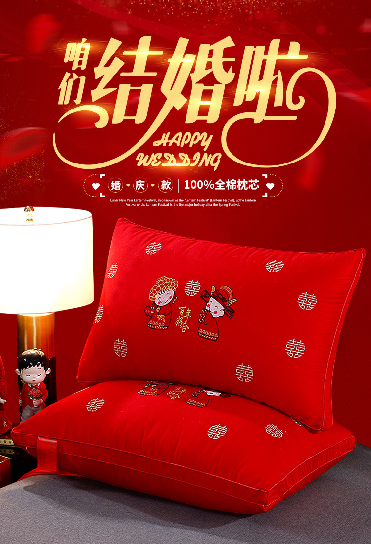 순면 자수 베개심, 더블 행복문자, 순면 베개, 깃털 베개, 부드러운 베개, 결혼 선물, 가정용, 축제용스토어 가기