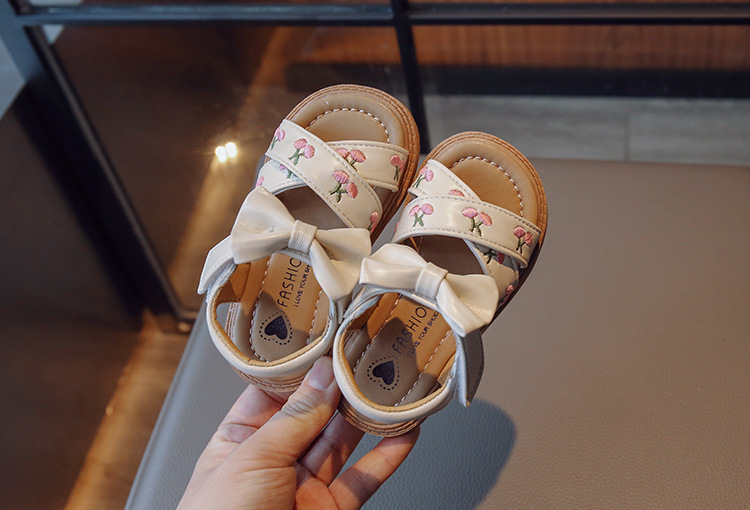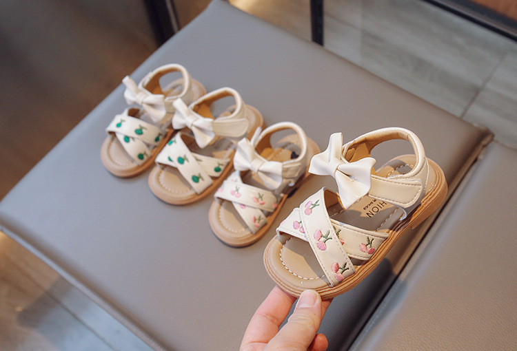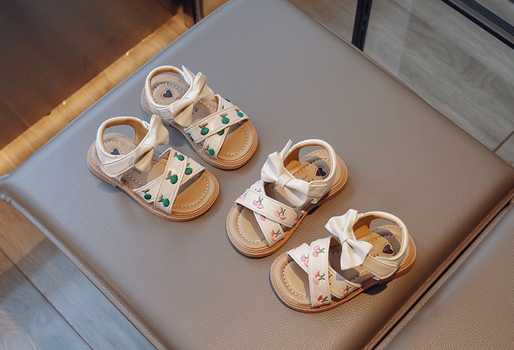 2023 여자 샌들 새로운 활 공주 신발 오픈 발가락 비치 신발 귀여운 샌들 도매 패션 어린이 신발스토어 가기
