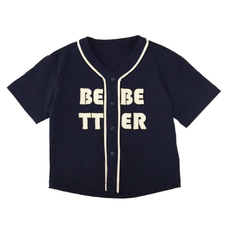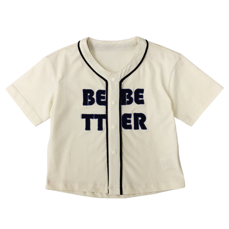 마오양 아동복 봄 여름 일본 스타일 야구 라운드넥 반팔 가디건 숏 자켓 레터 자수 아동 티셔츠 다용도 트렌디 아동복