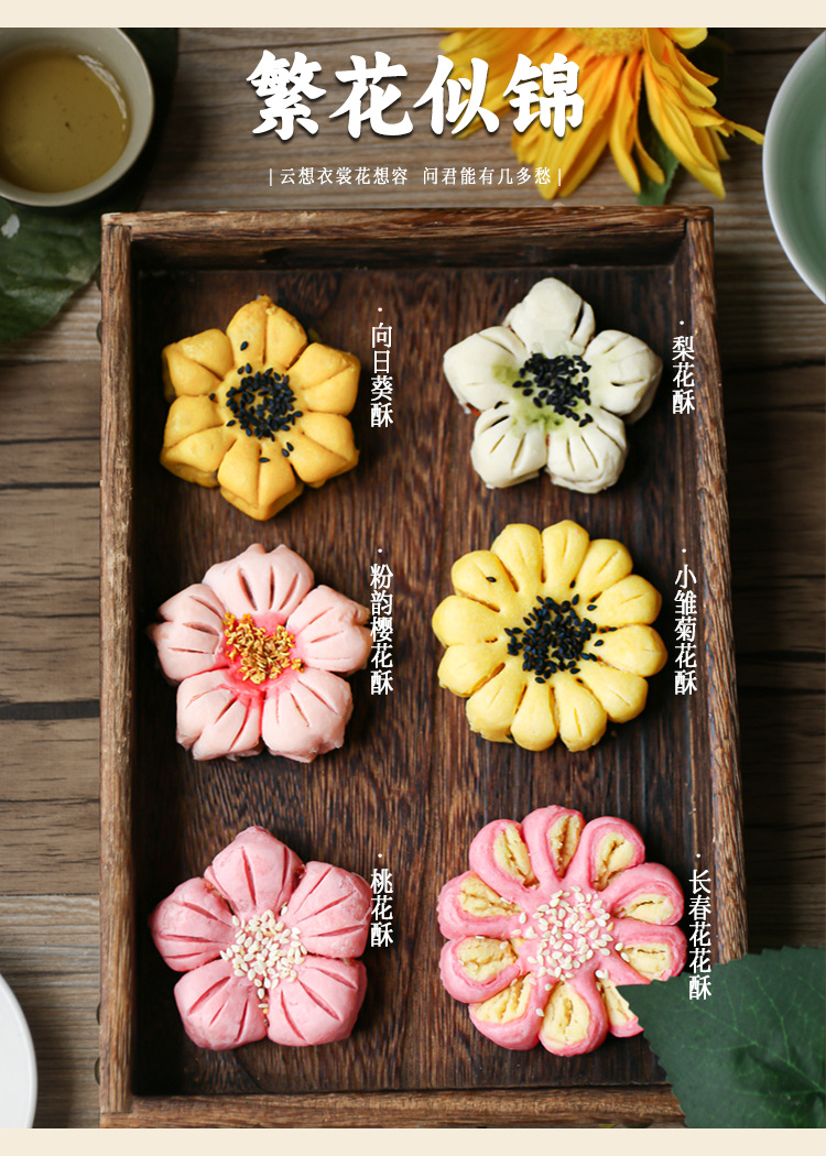 중국 과자 연꽃 바삭 바삭한 베이커리 전통 과자 복숭아 꽃 선명한 간식 디저트 Su 스타일 차 스낵 도매