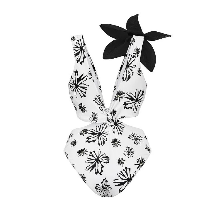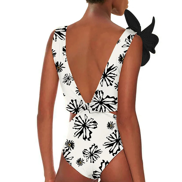 2024 유럽 및 미국 신상 원피스 수영복 딥 V3D 입체 꽃 장식 프린트 원피스 스커트 세트 2376스토어 가기