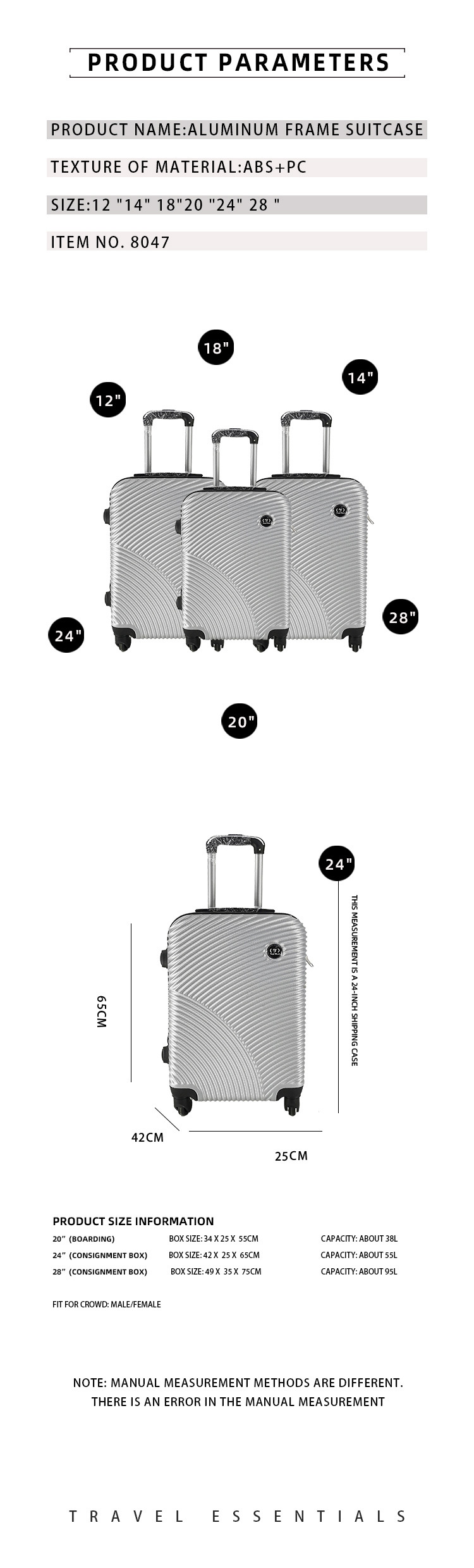 공장 도매 패션 캐주얼 ABS 트롤리 케이스 가방 3 조각 세트 멀티 피스 세트 세트스토어 가기