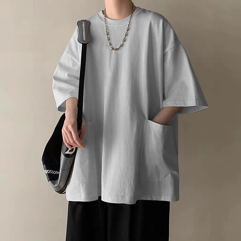 큰 포켓 티셔츠 소년 반팔 여름 옷 패션 브랜드 패션 모든 매치 디자인 감각 무거운 7 점 슬리브스토어 가기
