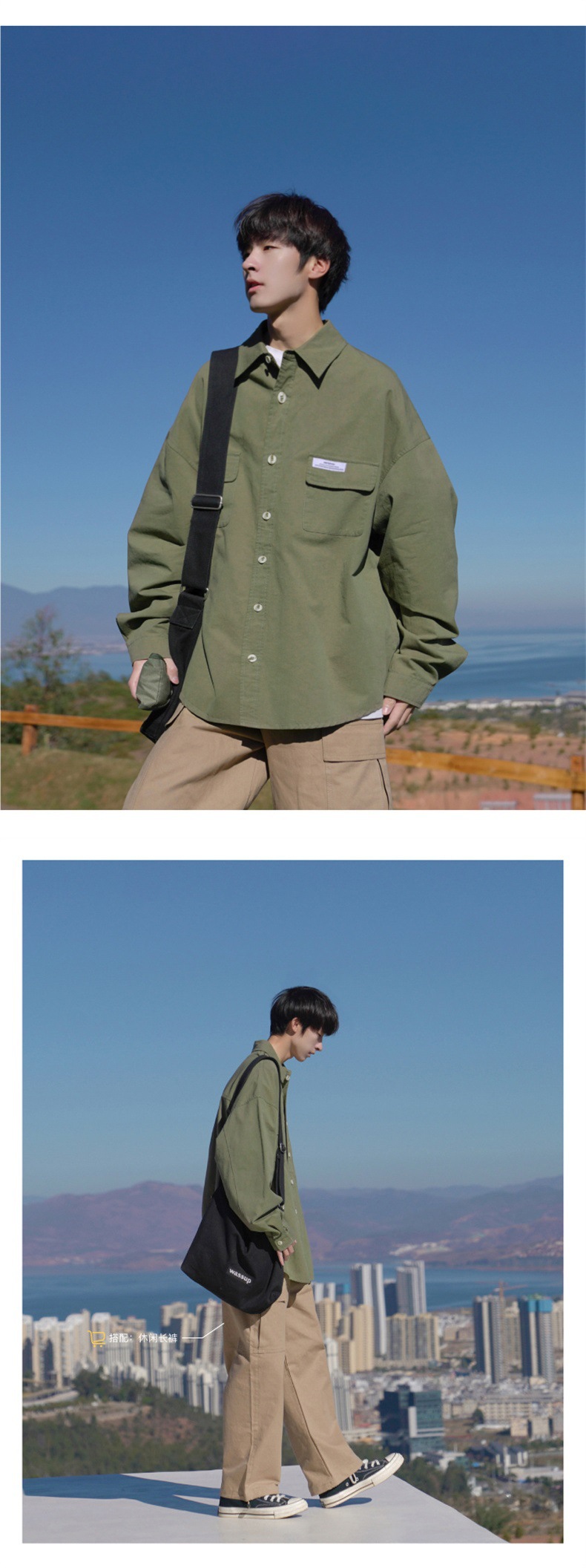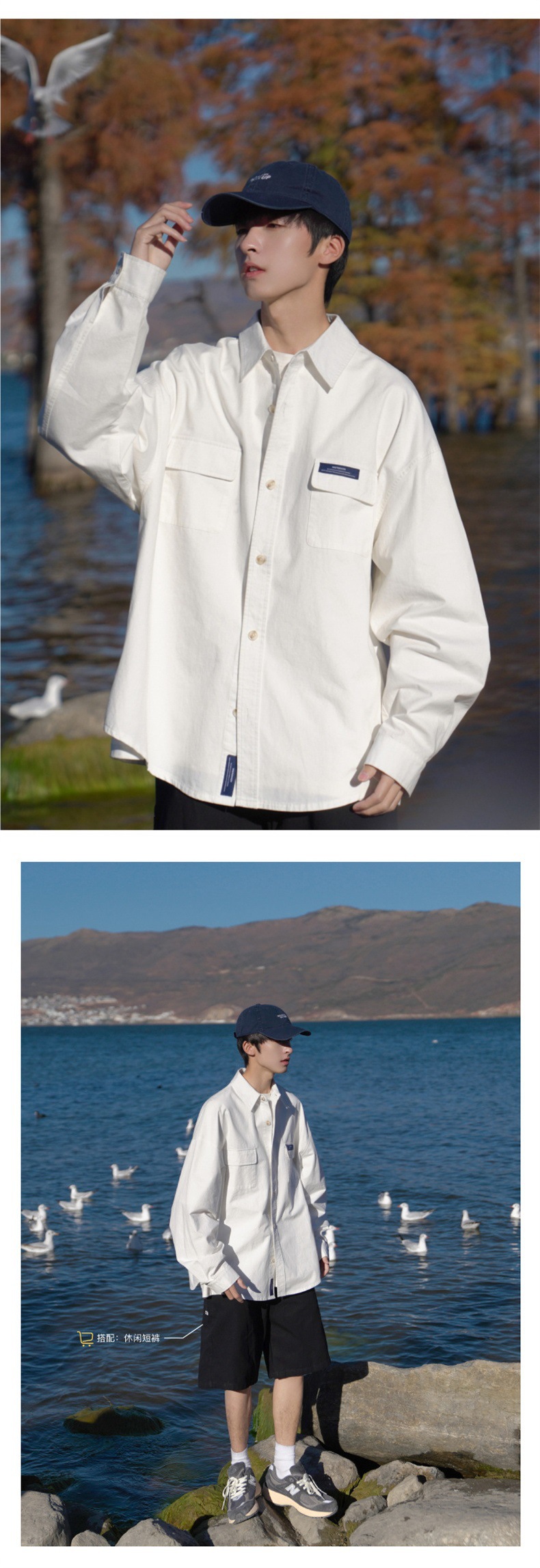 셔츠 긴팔 남자의 하이 엔드 센스 유행 인테리어 강아지 잘 생긴 봄과 가을 하이 스트리트 느슨한 패션 브랜드 작업 셔츠 캐주얼 재킷스토어 가기