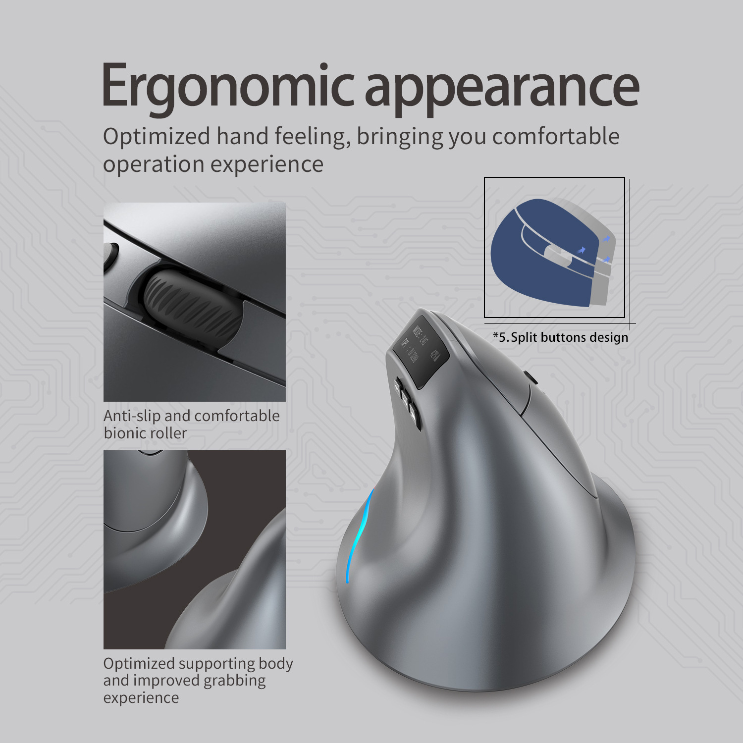 ZELOTES 마스터 F-26C 디스플레이 블루투스 무선 충전 듀얼 모드 그립 수직 안티 마우스 핸드 마우스