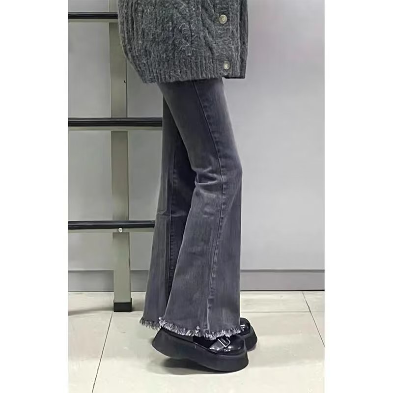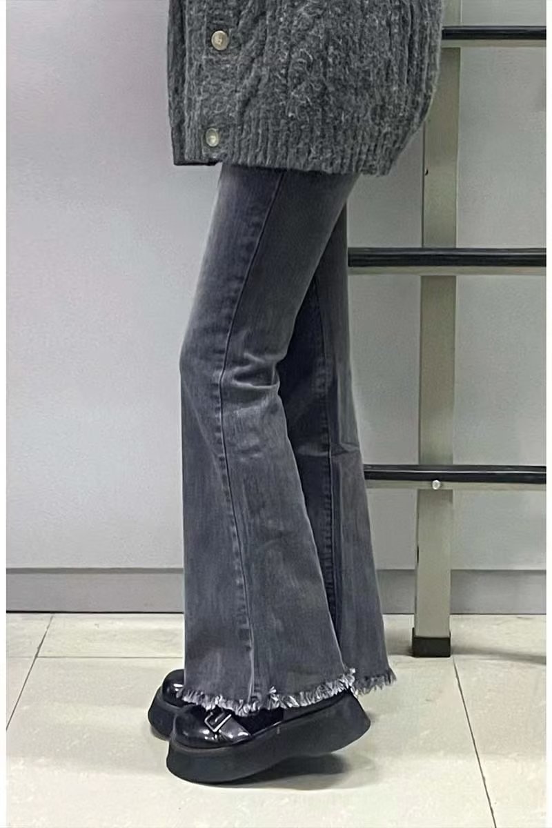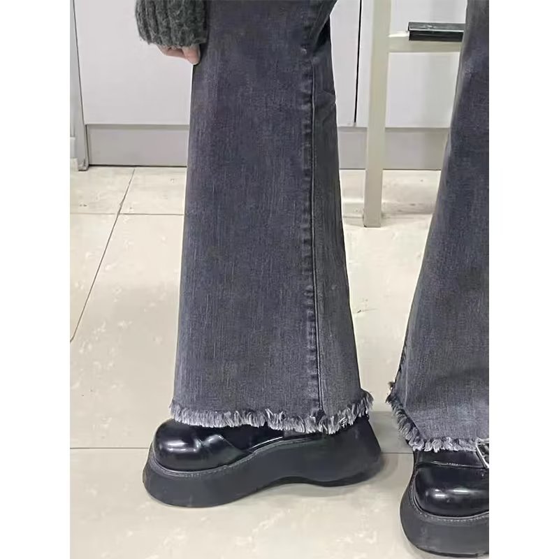 스몰 마이크로 라 진 어린이 봄 가을 디자인 센스 틈새 하이 웨이스트 슬림핏 루즈한 슬림핏 랩 와이드 팬츠