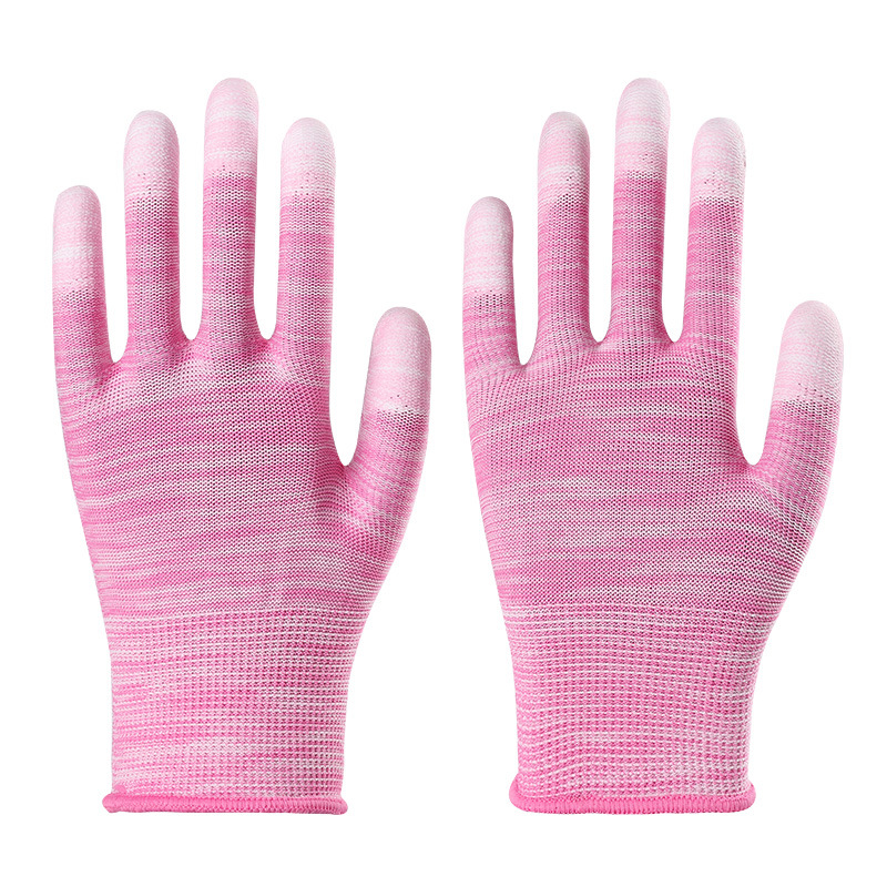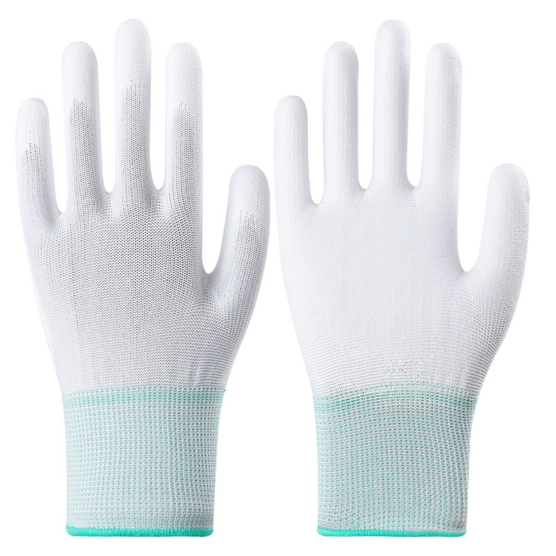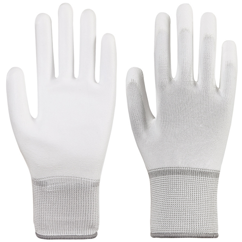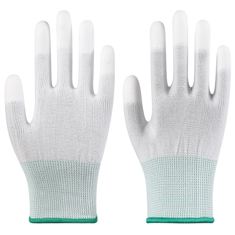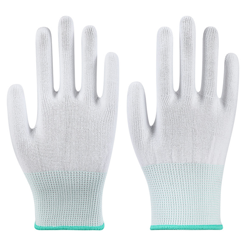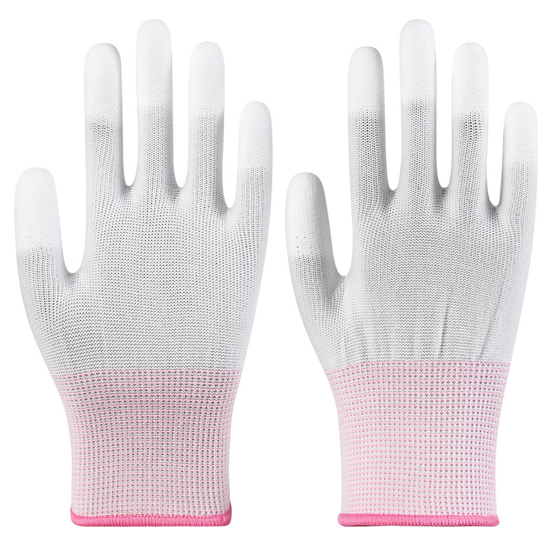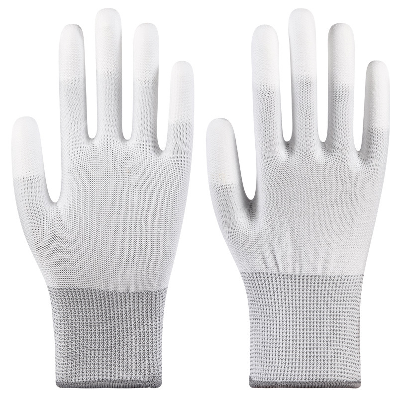 얇은 PU 코팅 손가락 및 손바닥 마모 방지 미끄럼 방지 통기성 남녀 공용 전자 공장 작업 방진 나일론 코팅 안전 장갑