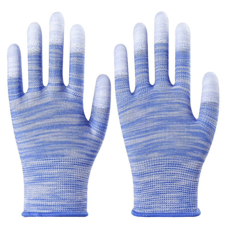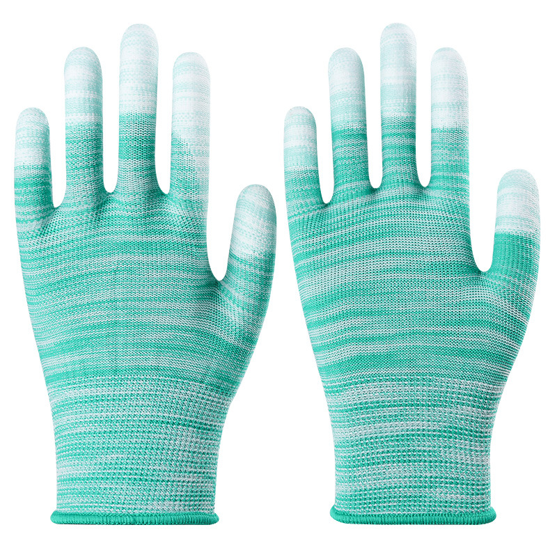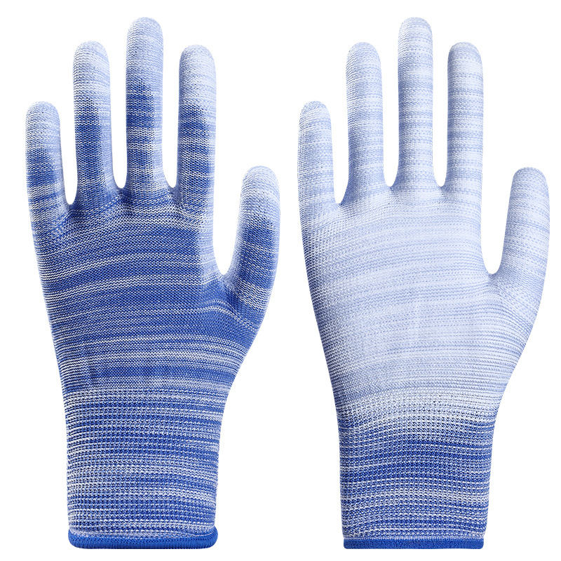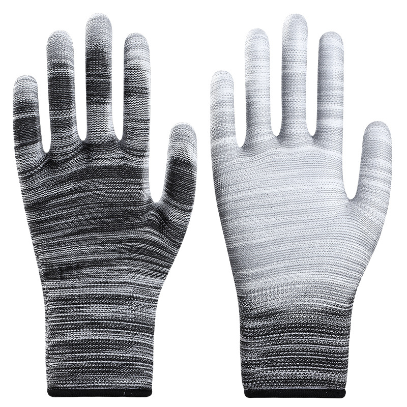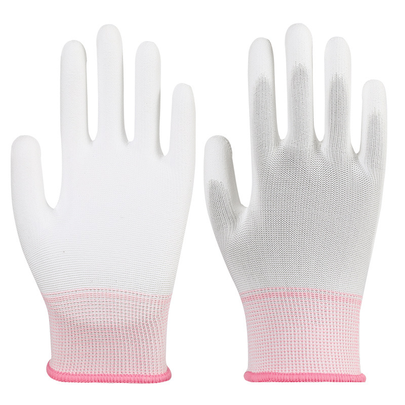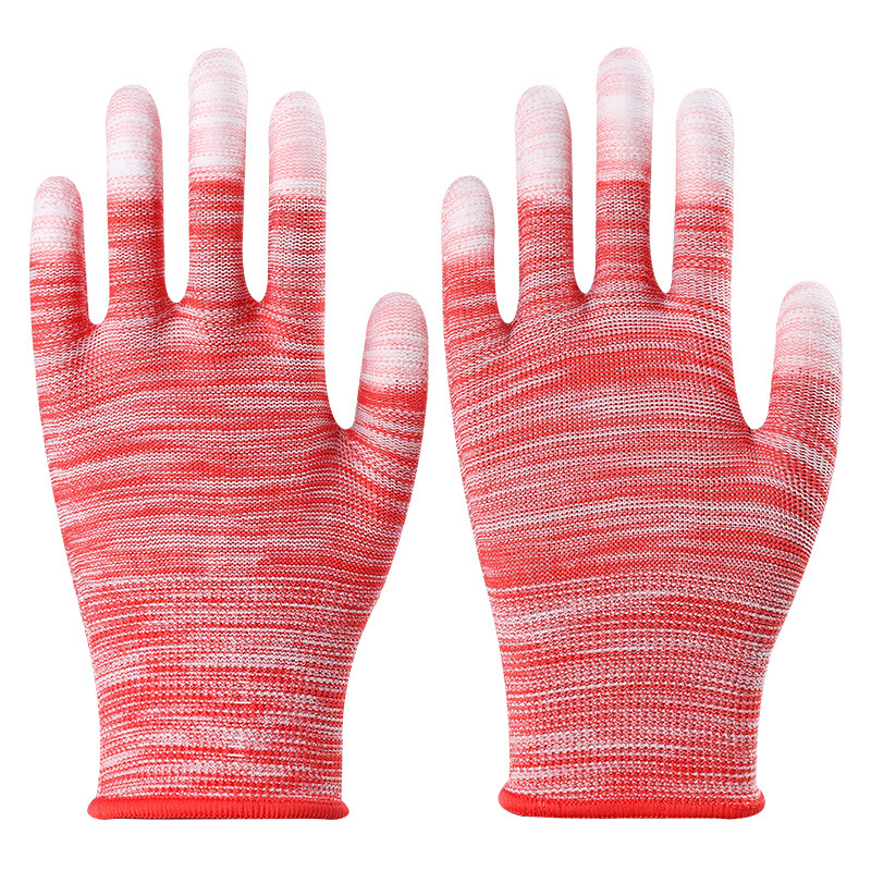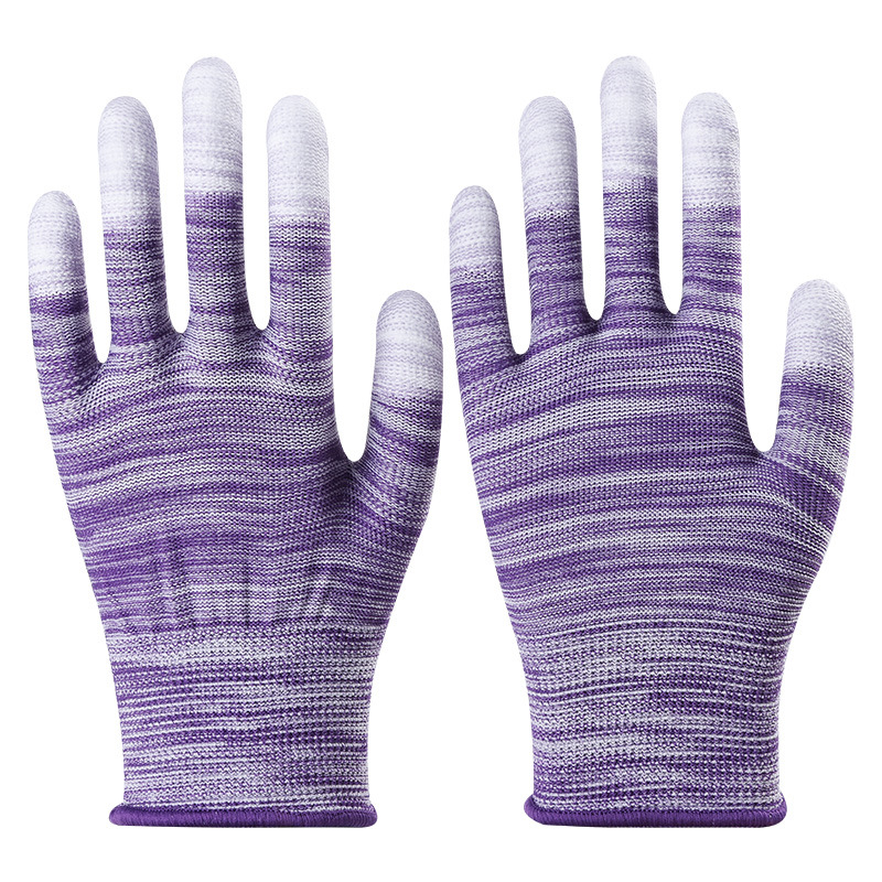얇은 PU 코팅 손가락 및 손바닥 마모 방지 미끄럼 방지 통기성 남녀 공용 전자 공장 작업 방진 나일론 코팅 안전 장갑