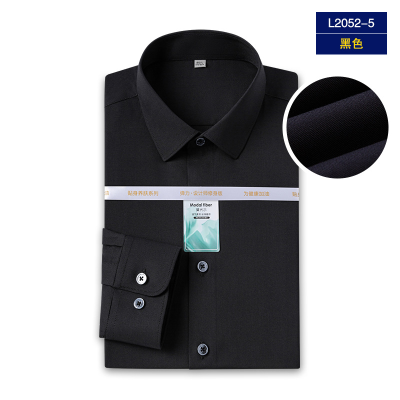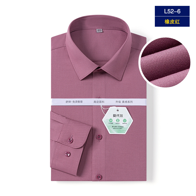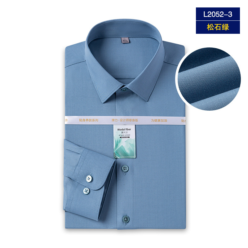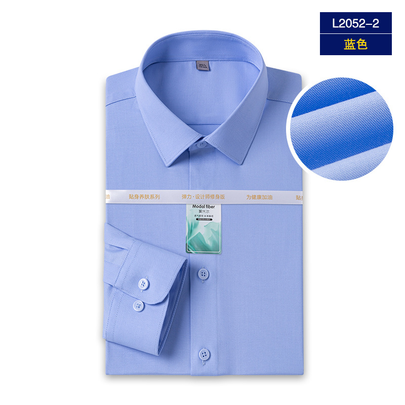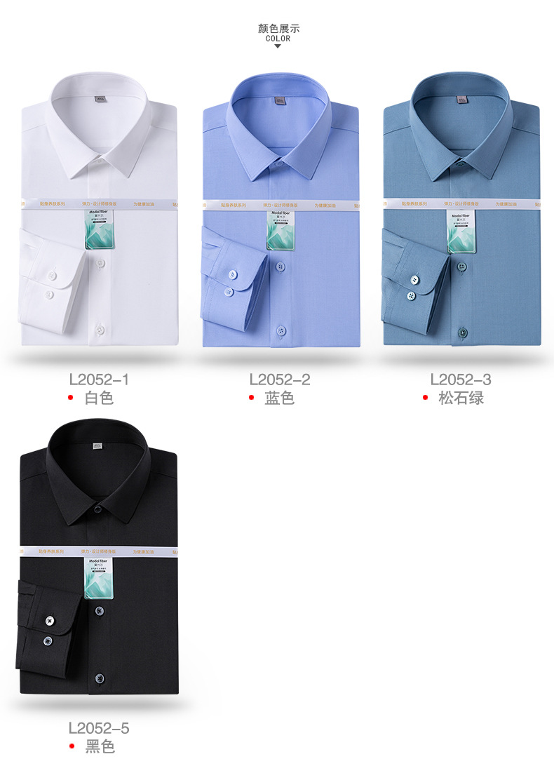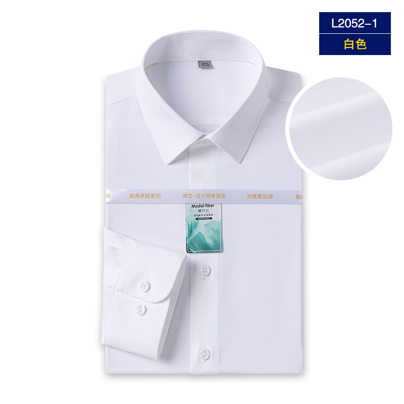 Yisang 남성용 모달 긴팔 셔츠 남성용 주름 방지 이지 케어 비즈니스 캐주얼 스트레치 화이트 셔츠
