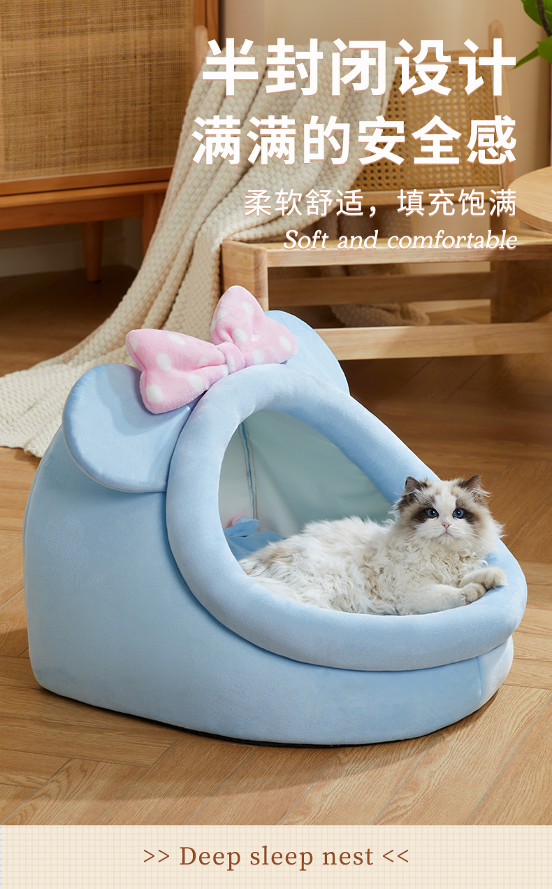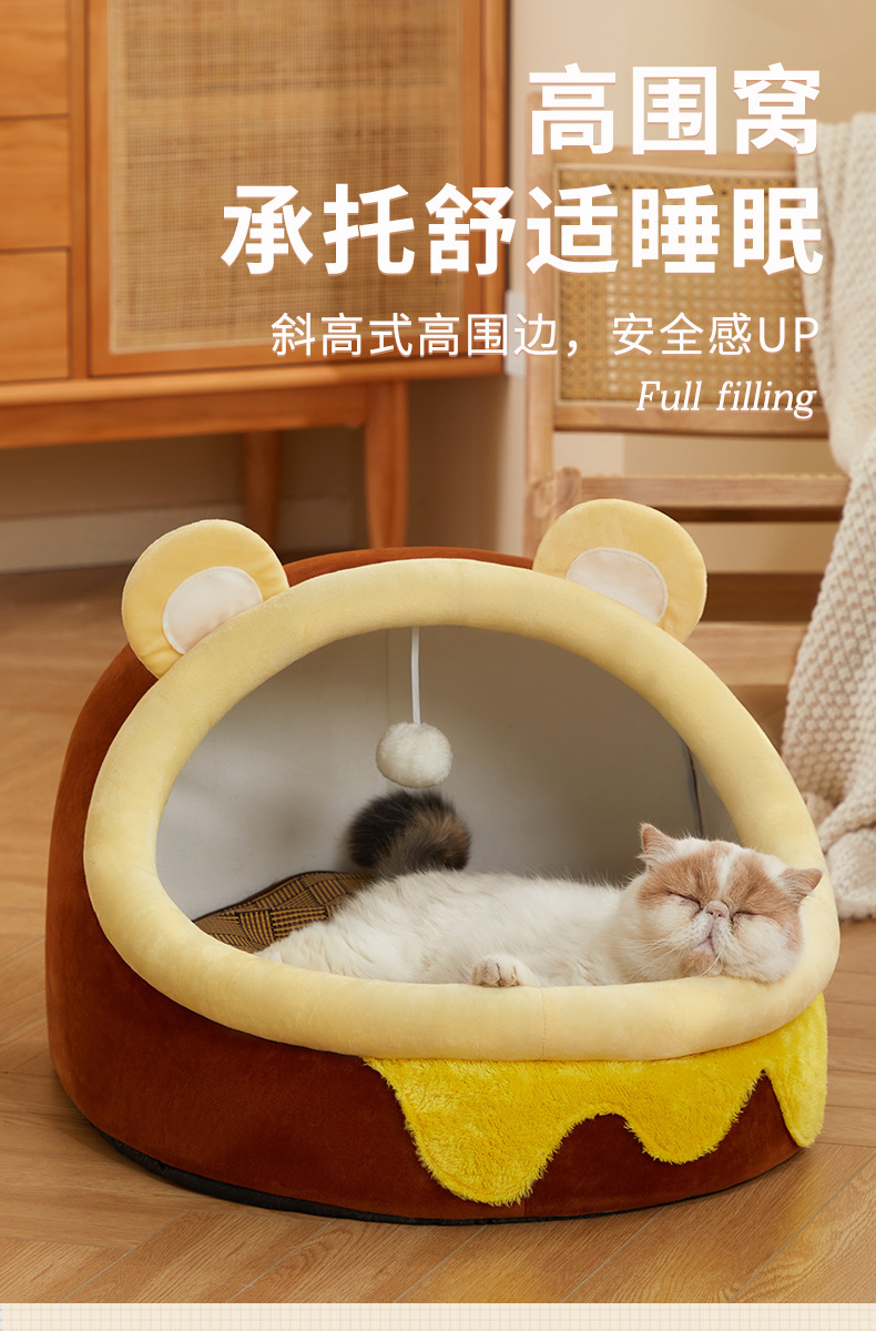 폐쇄형 고양이 집, 다묘 가족을 위한 고양이 잠자리, 반폐쇄형 통기성, 탈부착 및 세탁 가능스토어 가기