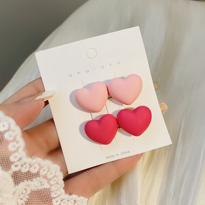핑크 달콤한 작은 머리핀 사이드 클립 여자의 사이드 귀여운 머리핀 소녀의 심장 Duckbill BB 클립 앞머리 클립 머리 장식