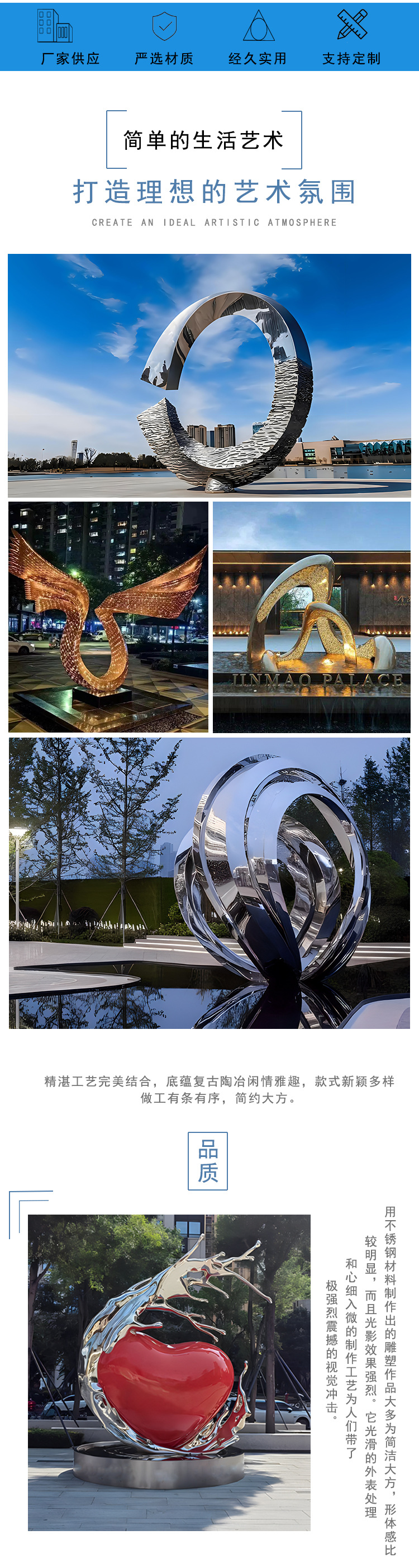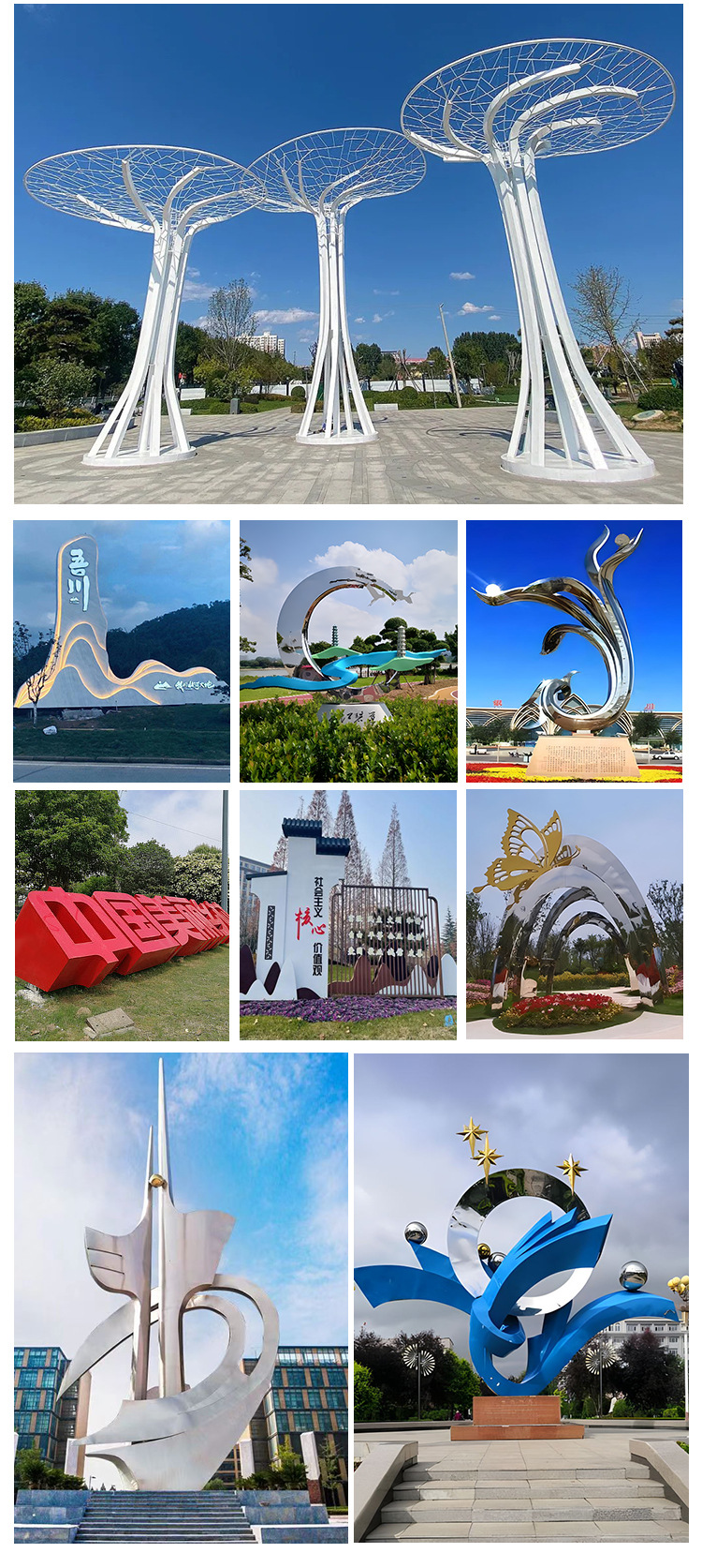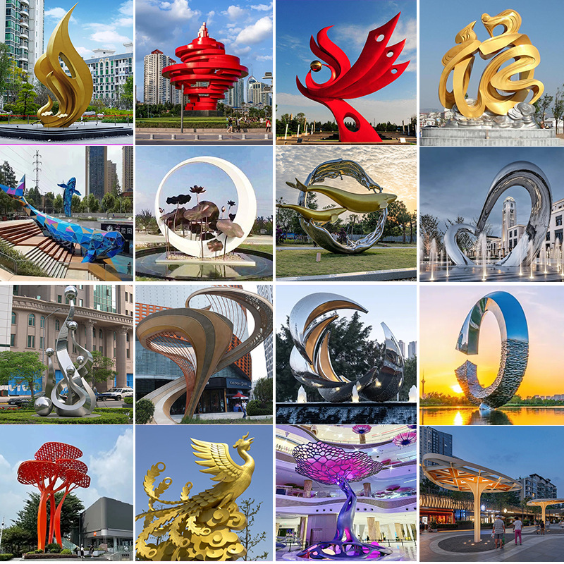 야외 대형 스테인리스 조각품 제조업체 광장 추상 창작 예술품 경관 공원 장식품 중공