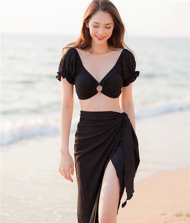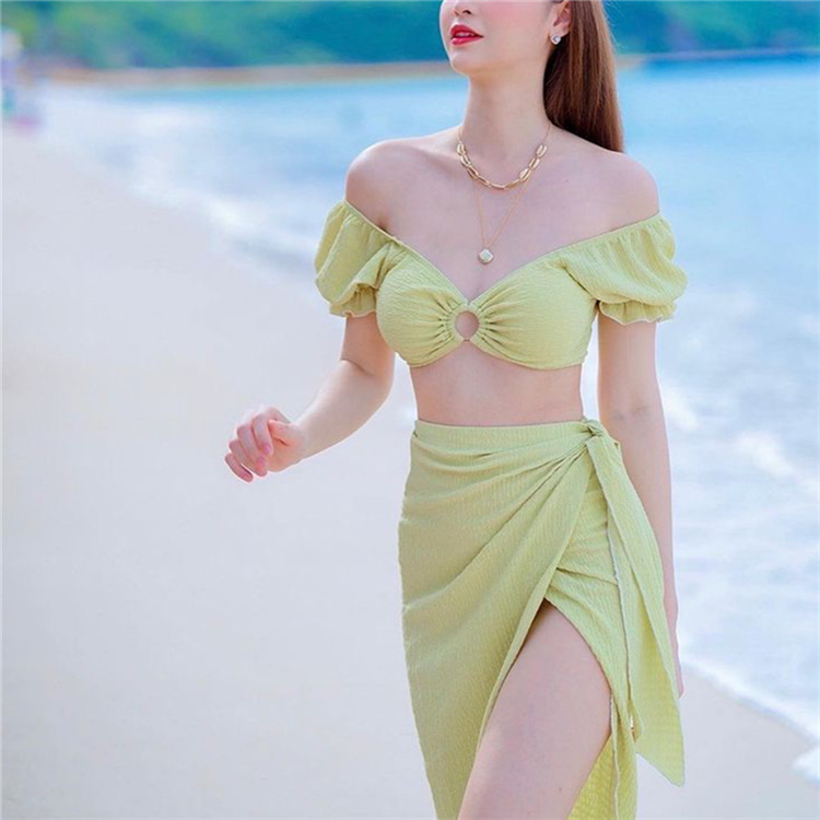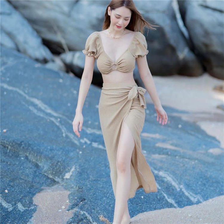 크로스 보더 도매 유럽과 미국의 여신 보수적 인 롱 스커트 반팔 수영복 슬림 섹시 비키니 3 종 세트스토어 가기