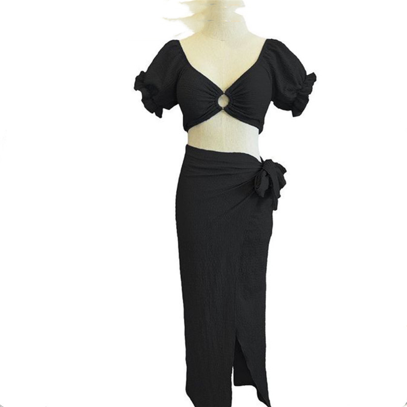 크로스 보더 도매 유럽과 미국의 여신 보수적 인 롱 스커트 반팔 수영복 슬림 섹시 비키니 3 종 세트