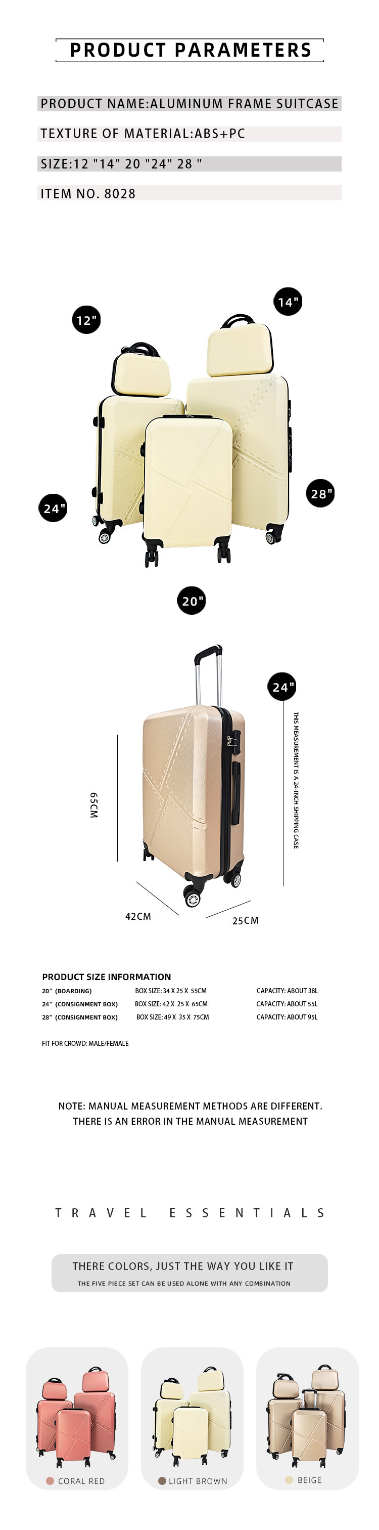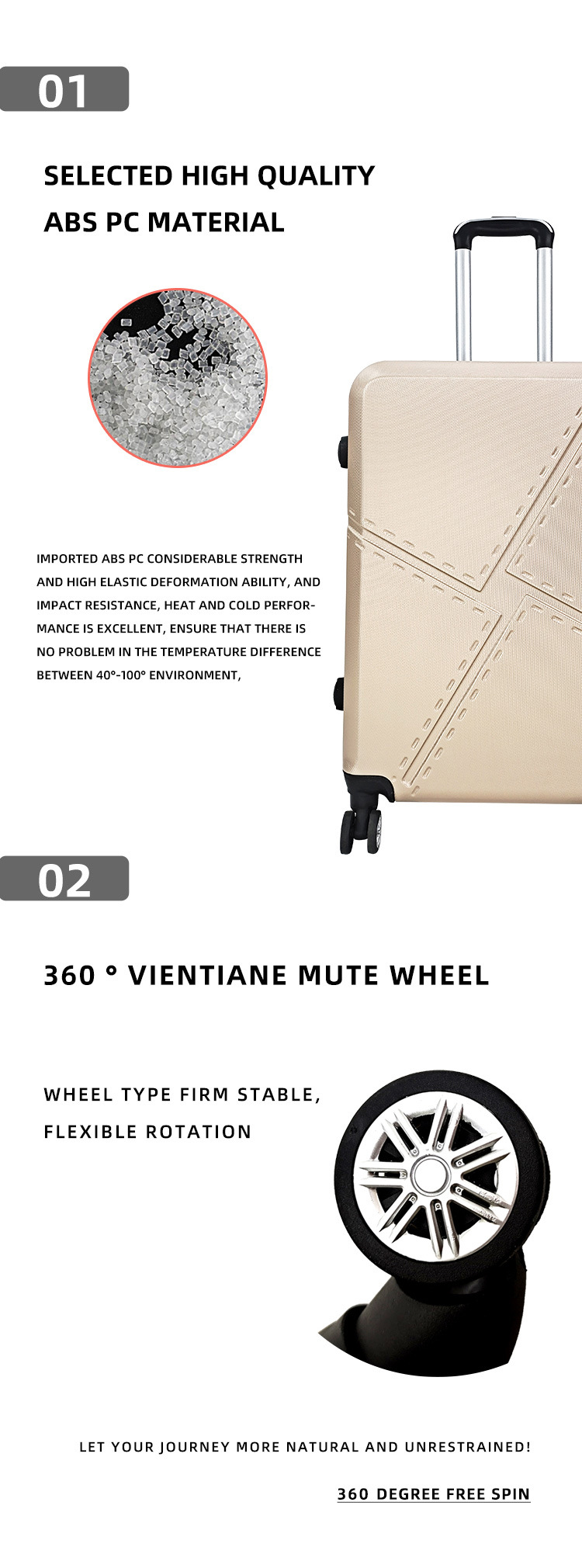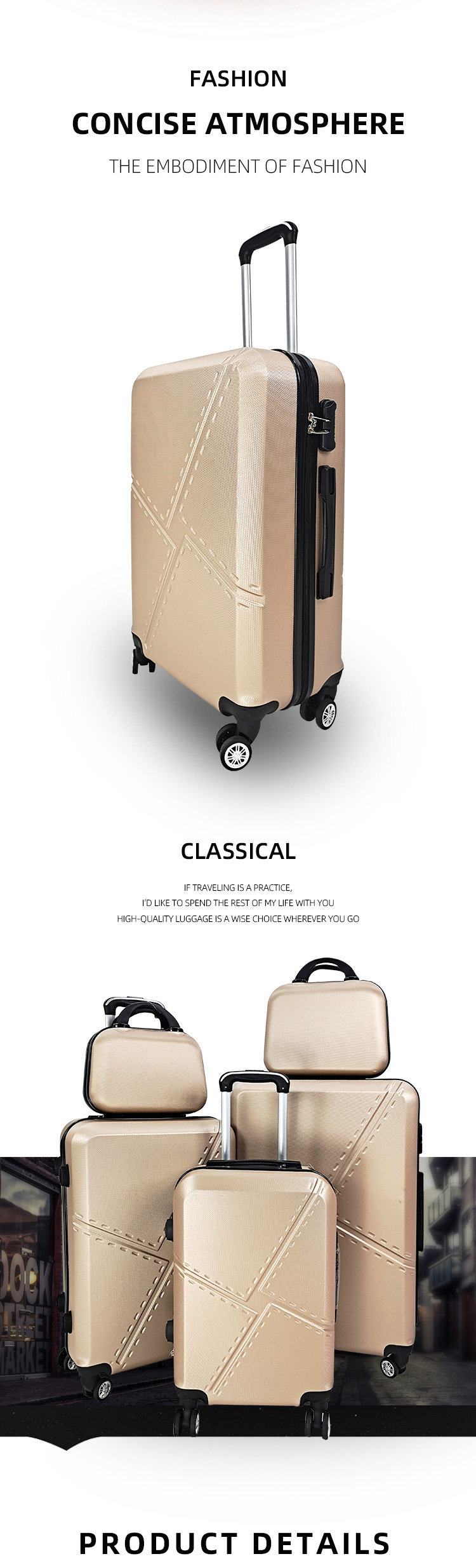 공장 도매 패션 캐주얼 ABS 트롤리 케이스 가방 3 조각 세트 멀티 피스 세트 세트스토어 가기