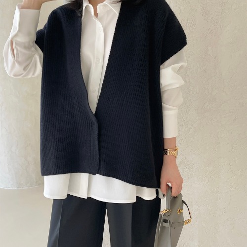 한국 세련된 패션 다목적 V-넥 니트 조끼 여자의 봄 2023 새로운 스타일 겹침 느슨한 스웨터 숄스토어 가기