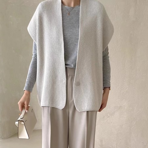 한국 세련된 패션 다목적 V-넥 니트 조끼 여자의 봄 2023 새로운 스타일 겹침 느슨한 스웨터 숄