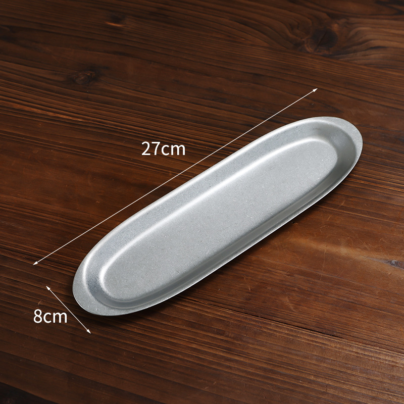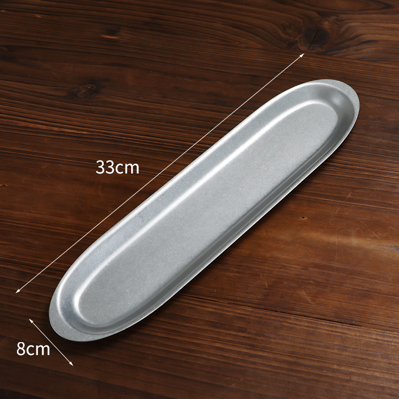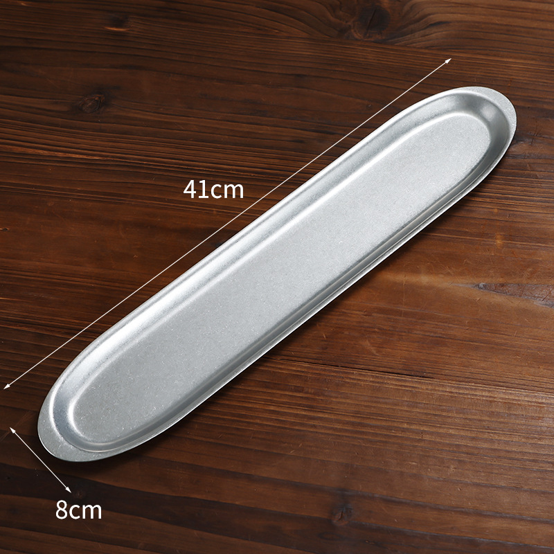 빈티지 한국식 스테인레스 스틸 새우 슬라이딩 플레이트 오래 된 바베큐 뱀 접시 쇠고기 공 접시 타원형 직사각형 접시 희미한 돼지 접시