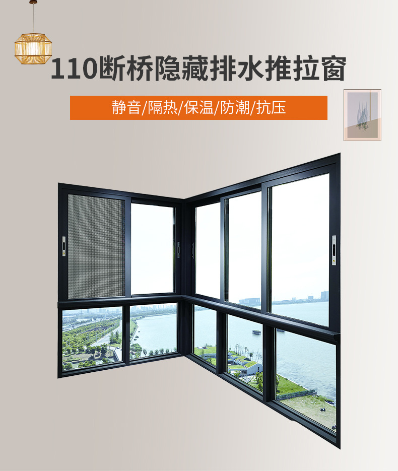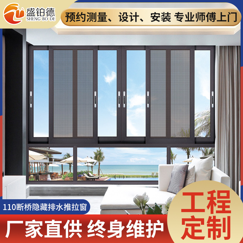 깨진 다리 알루미늄 문 및 창문 숨겨진 배수 슬라이딩 창 방음 평면 창문 깨진 다리 창 통합 도난 방지 알루미늄 합금 문 및 창문