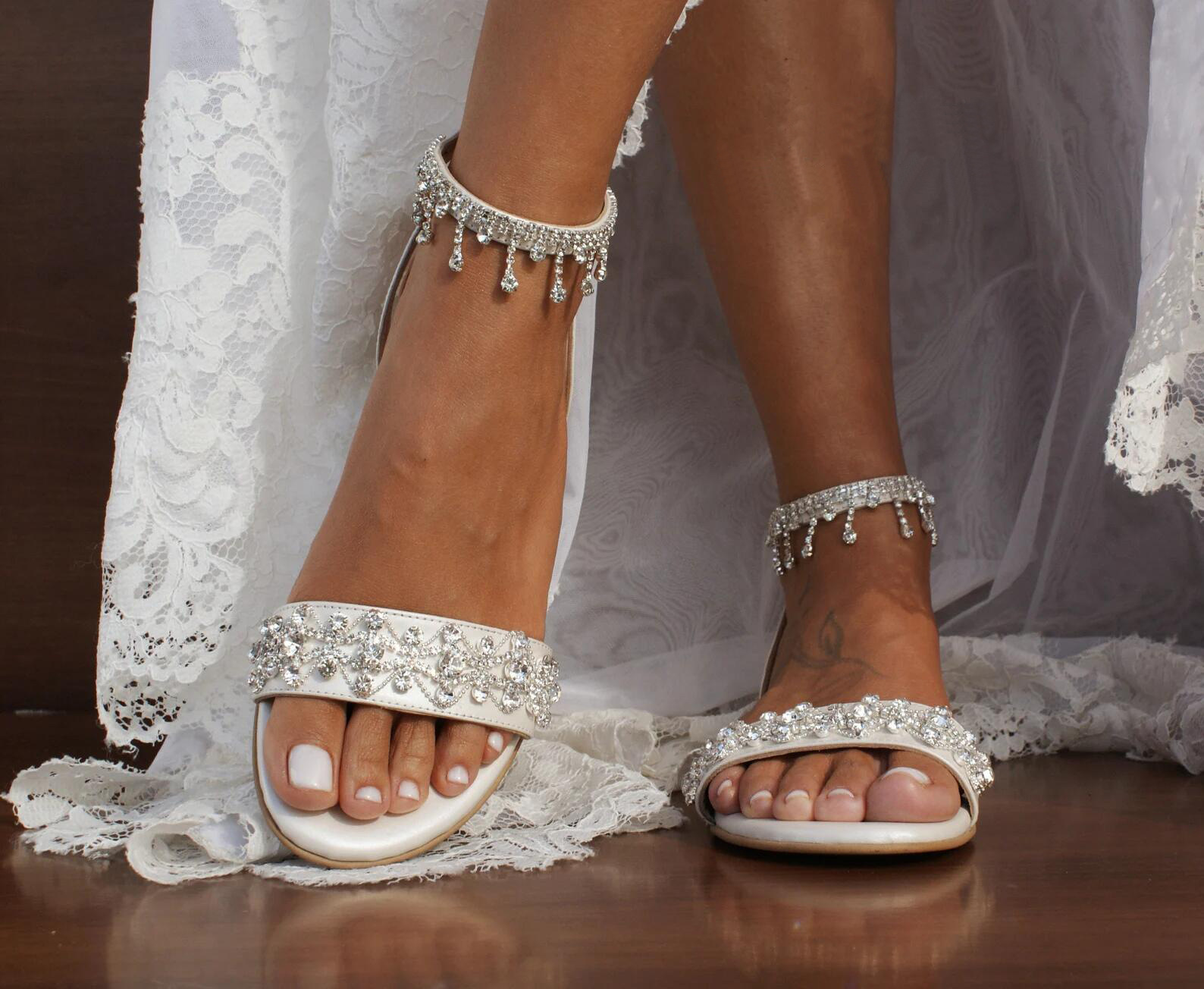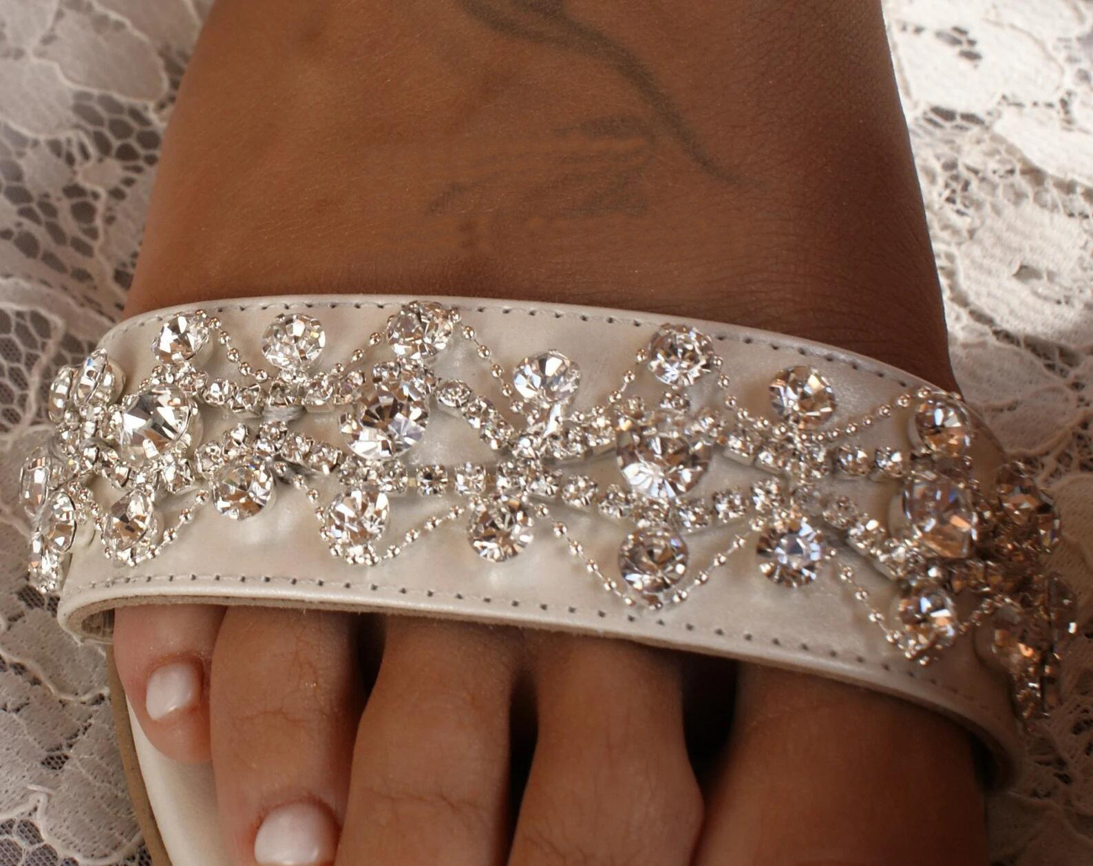2023 새로운 여성용 여름 화이트 플랫 샌들 다이아몬드 체인 웨딩 슈즈 댄스 캐주얼 여성 신발스토어 가기