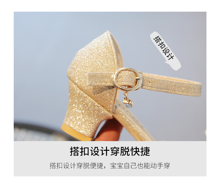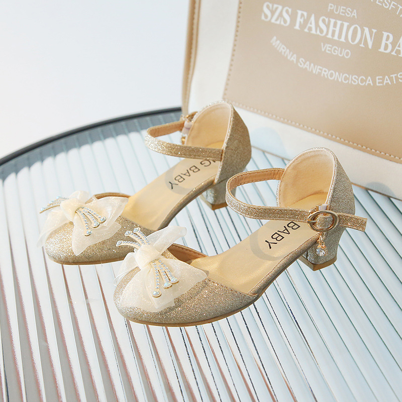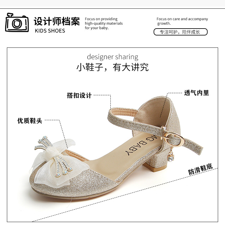 한국 패션 달콤한 꽃 어린이 하이힐 두꺼운 굽 2023 여름 새 소녀 샌들 어린이 신발 도매스토어 가기