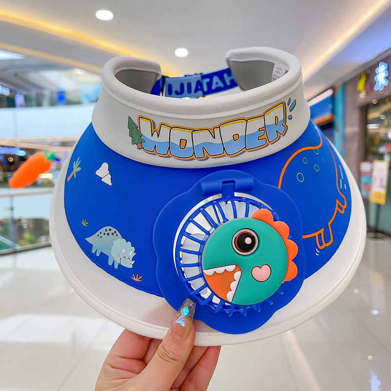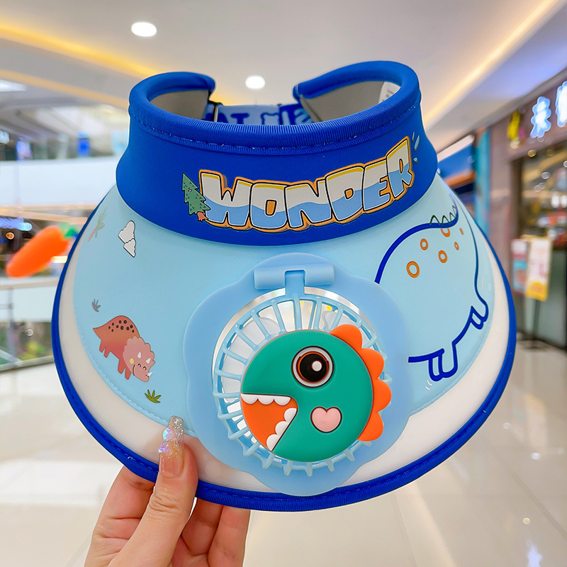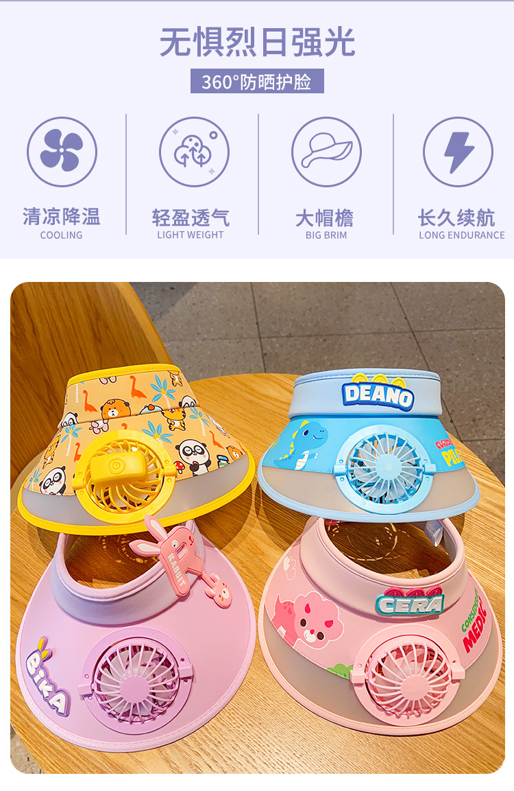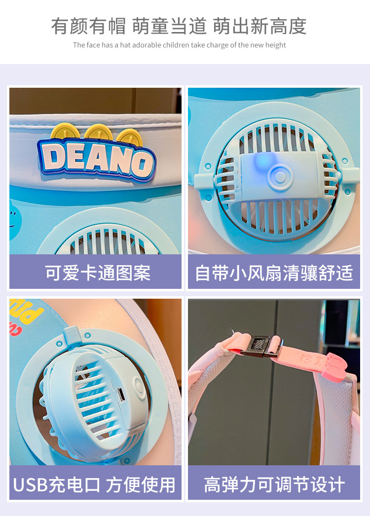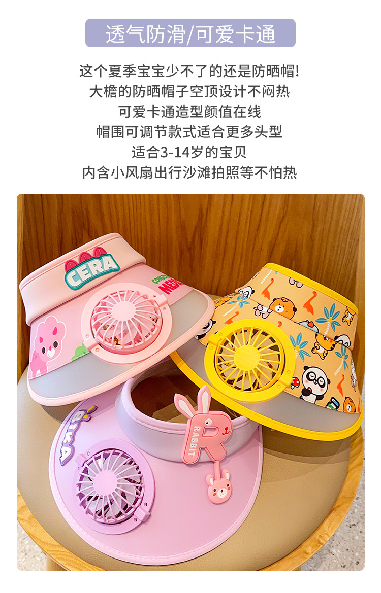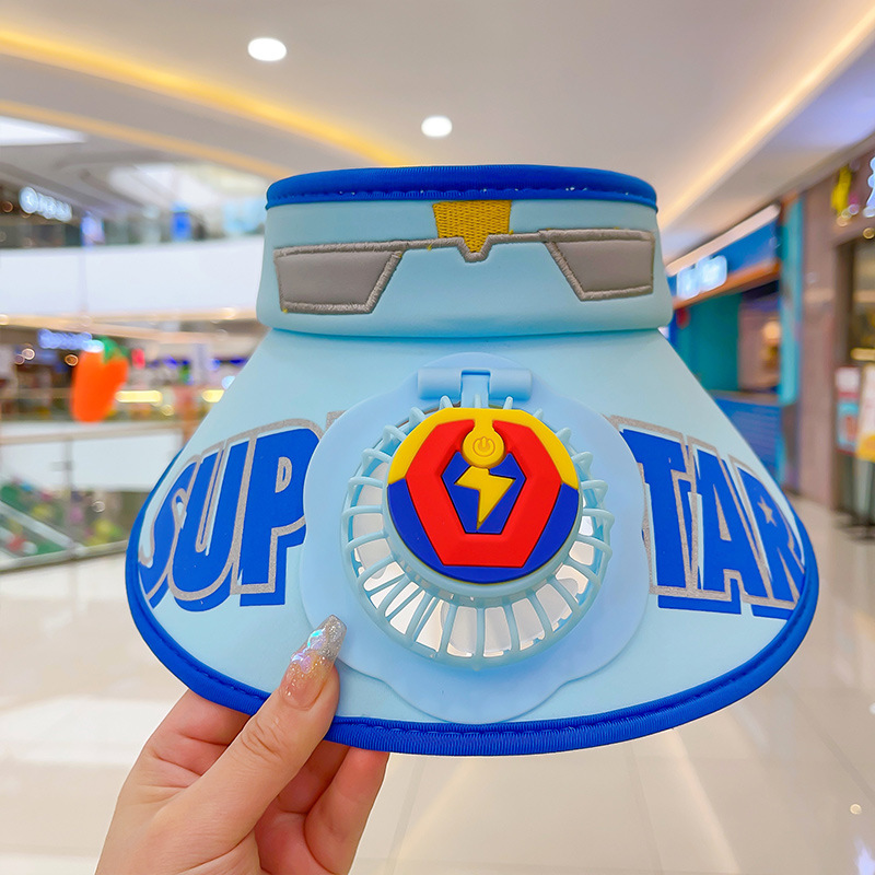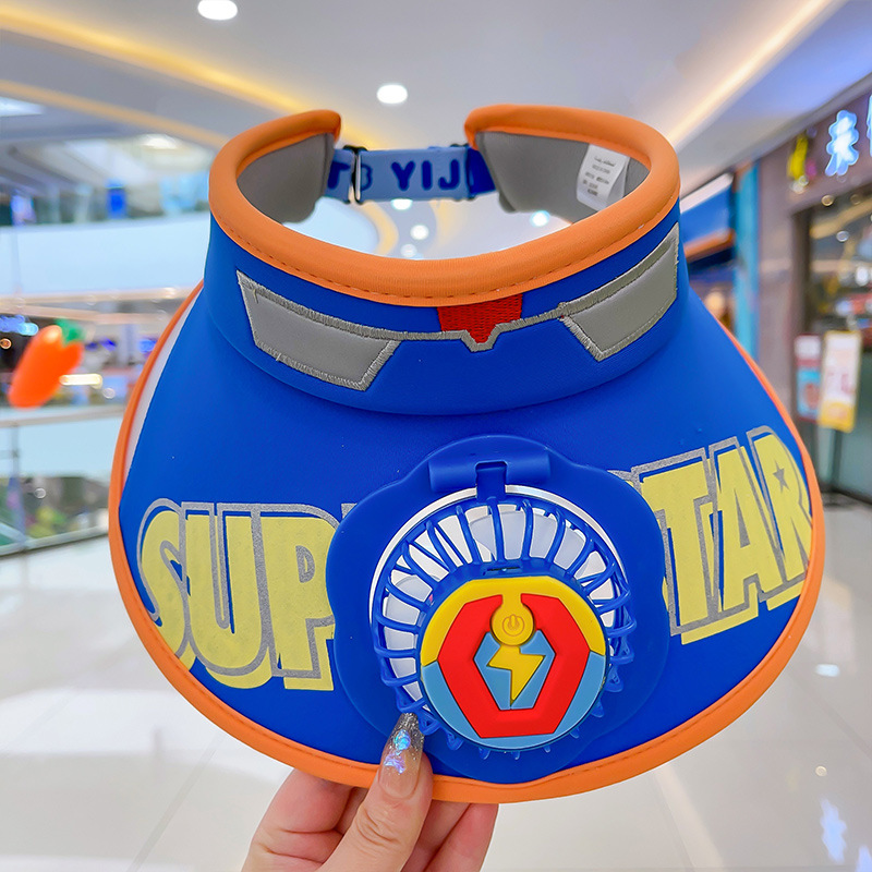 2023新款夏季儿童遮阳防晒帽防紫外线男童空顶太阳帽带风扇奥特曼