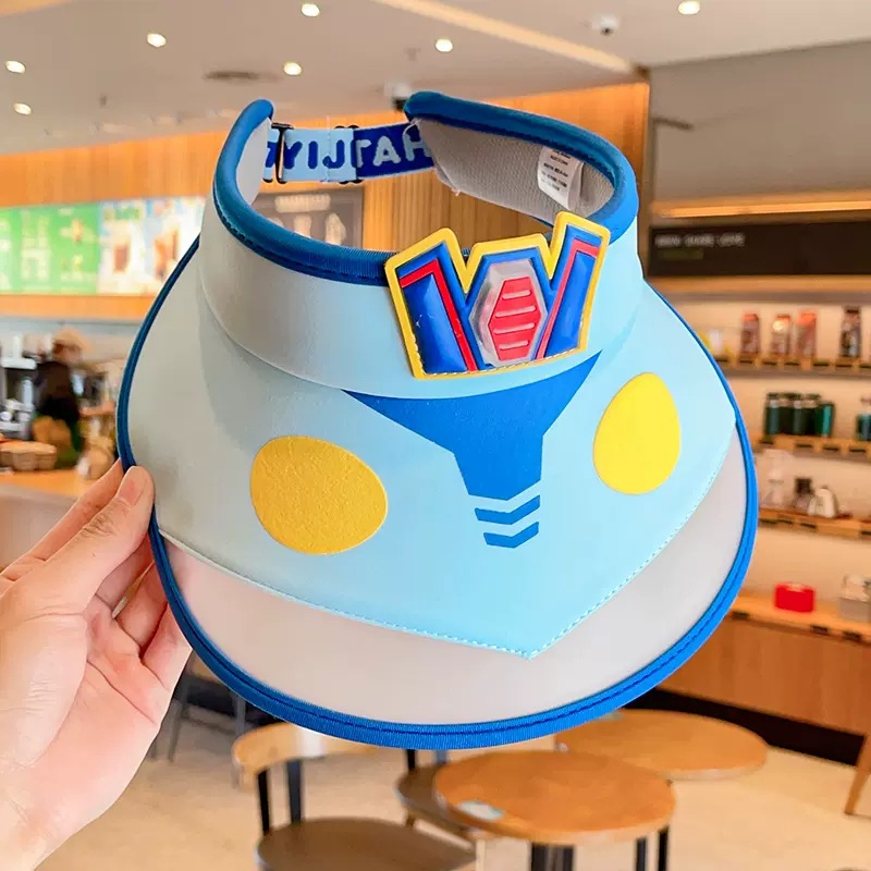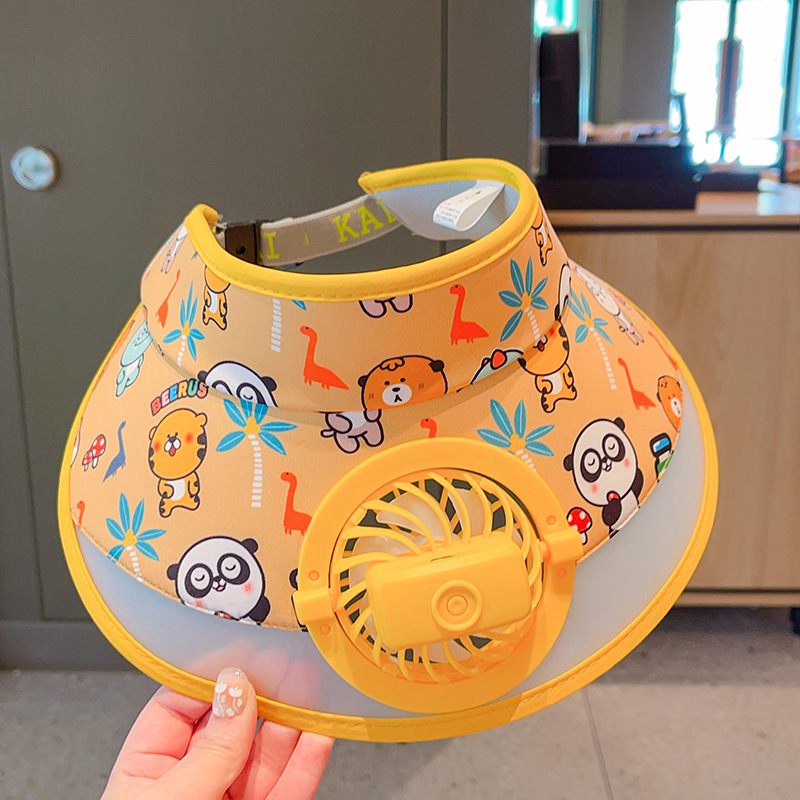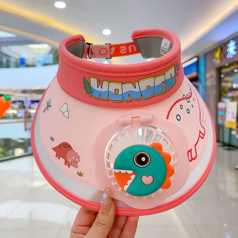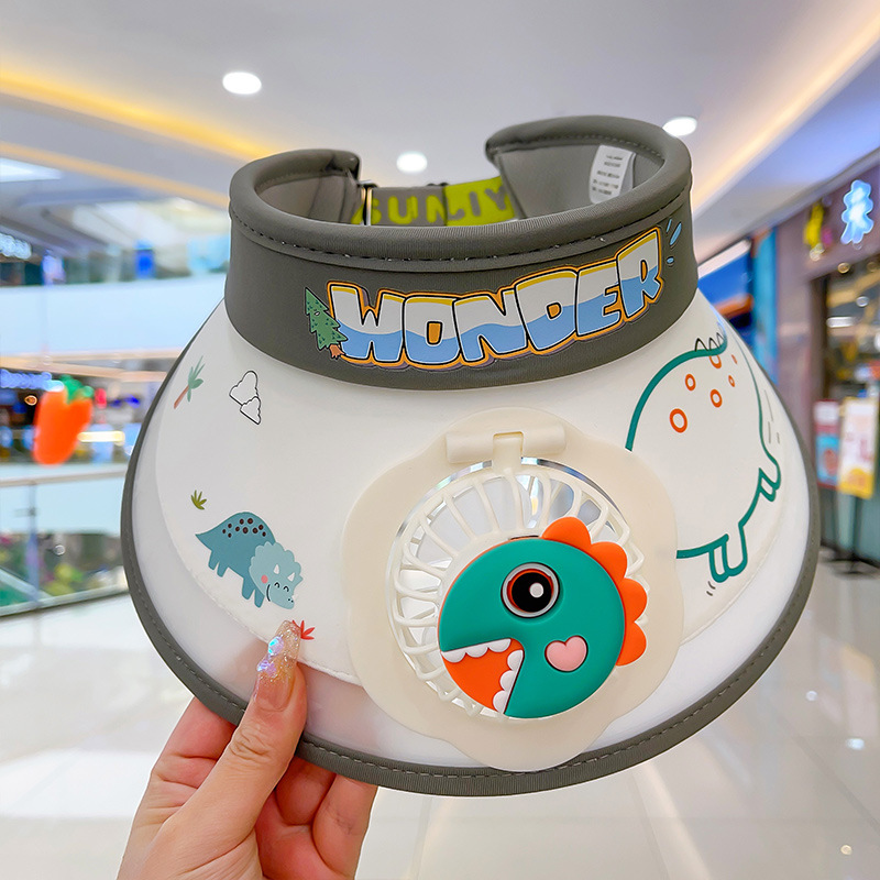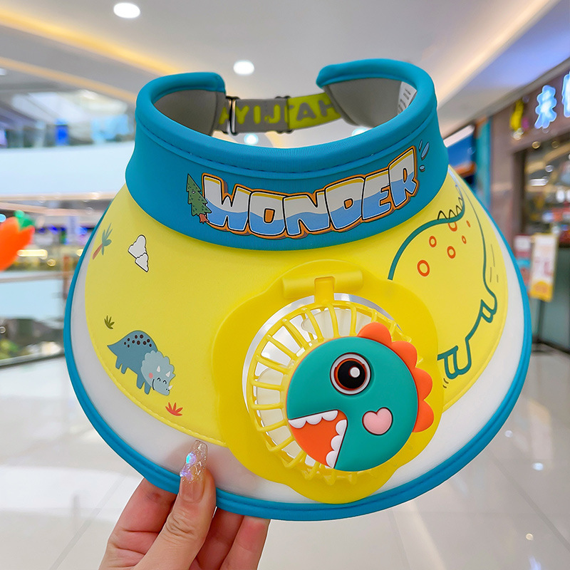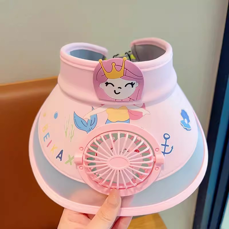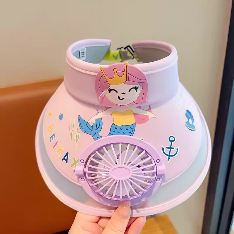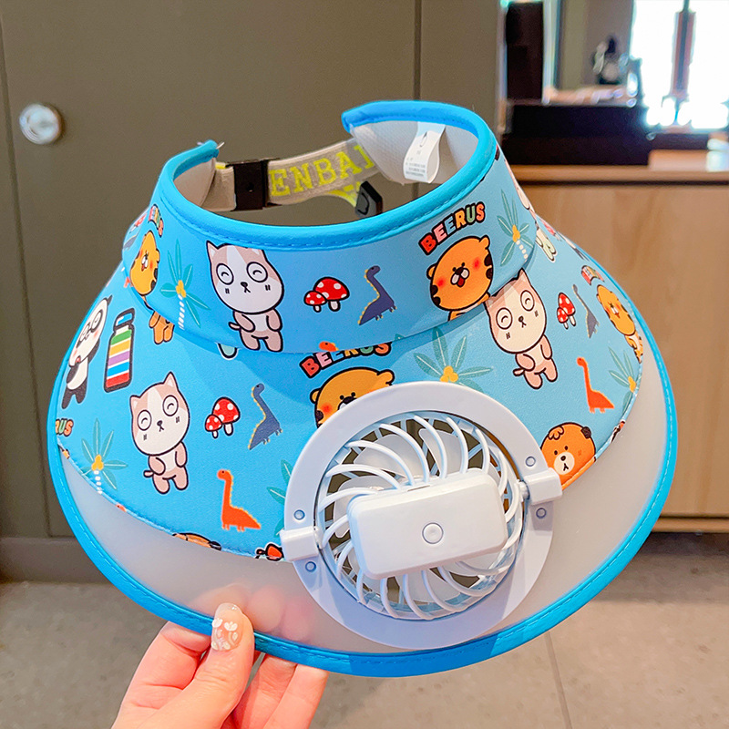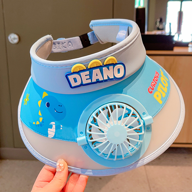 2023新款夏季儿童遮阳防晒帽防紫外线男童空顶太阳帽带风扇奥特曼