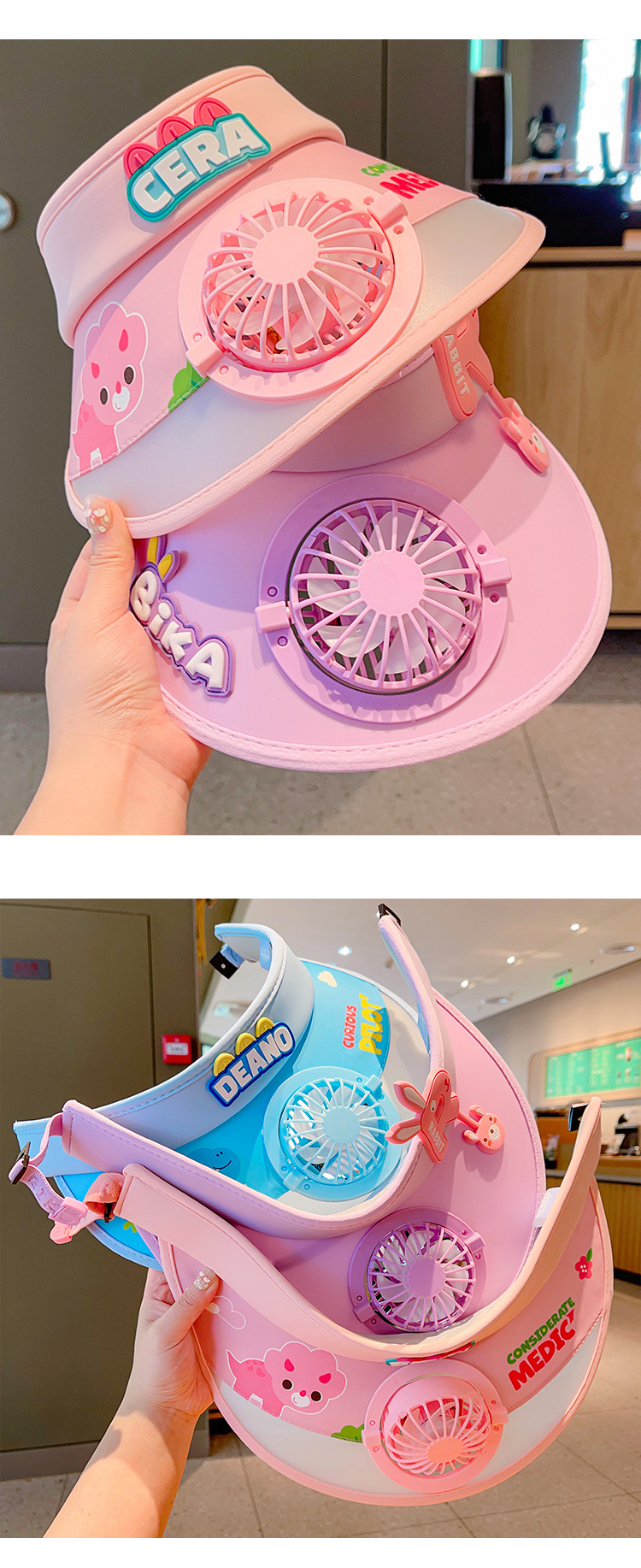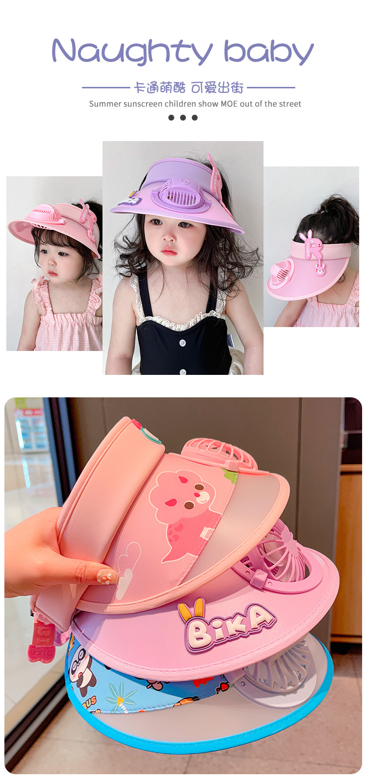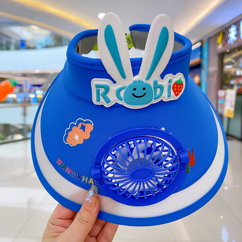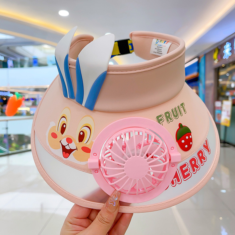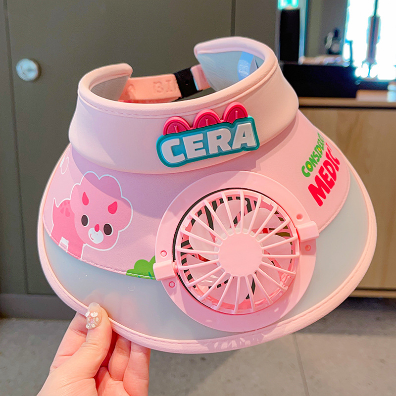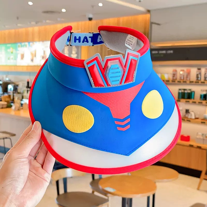 2023新款夏季儿童遮阳防晒帽防紫外线男童空顶太阳帽带风扇奥特曼
