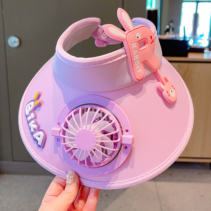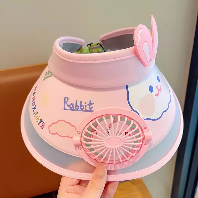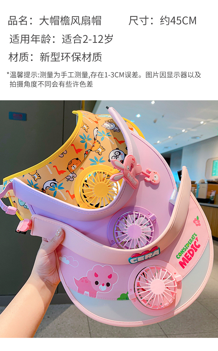 儿童遮阳帽夏季带风扇大帽檐防晒帽男女童宝宝户外空顶帽太阳帽子