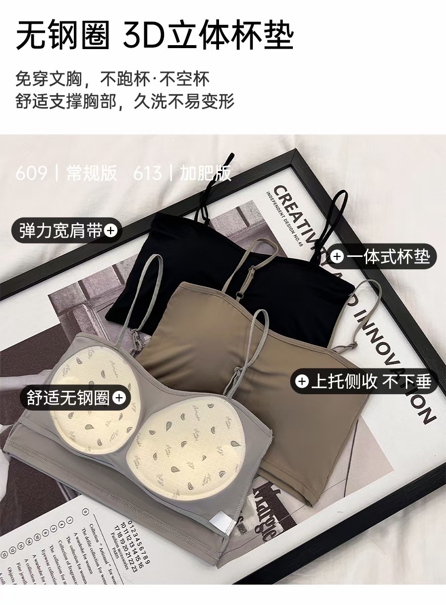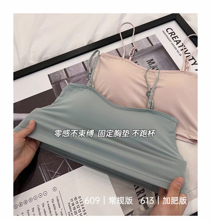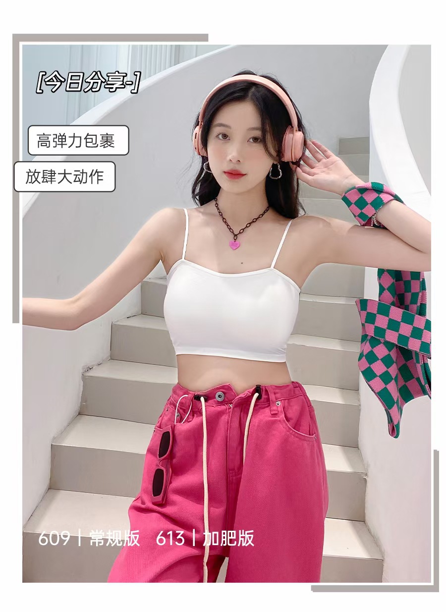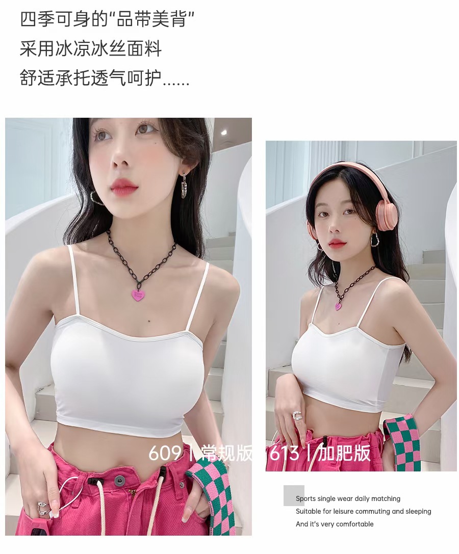 609 #613 # 여름 새로운 아이스 실크 원활한 솔리드 컬러 작은 슬링 고정 컵 편안한 통기성 섹시 슬링 조끼