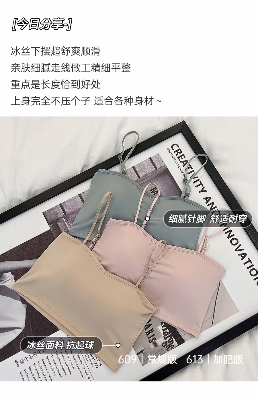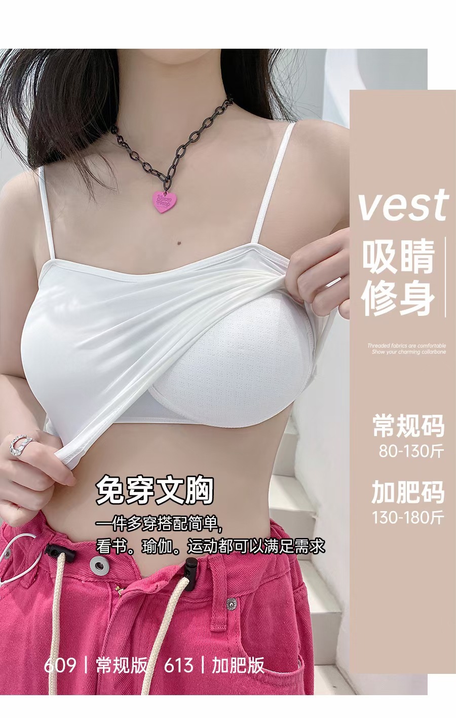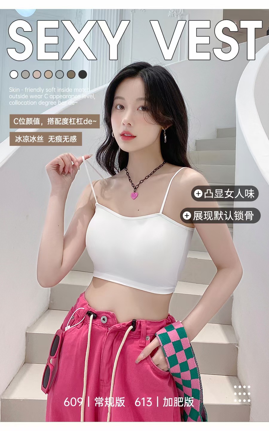 609 #613 # 여름 새로운 아이스 실크 원활한 솔리드 컬러 작은 슬링 고정 컵 편안한 통기성 섹시 슬링 조끼