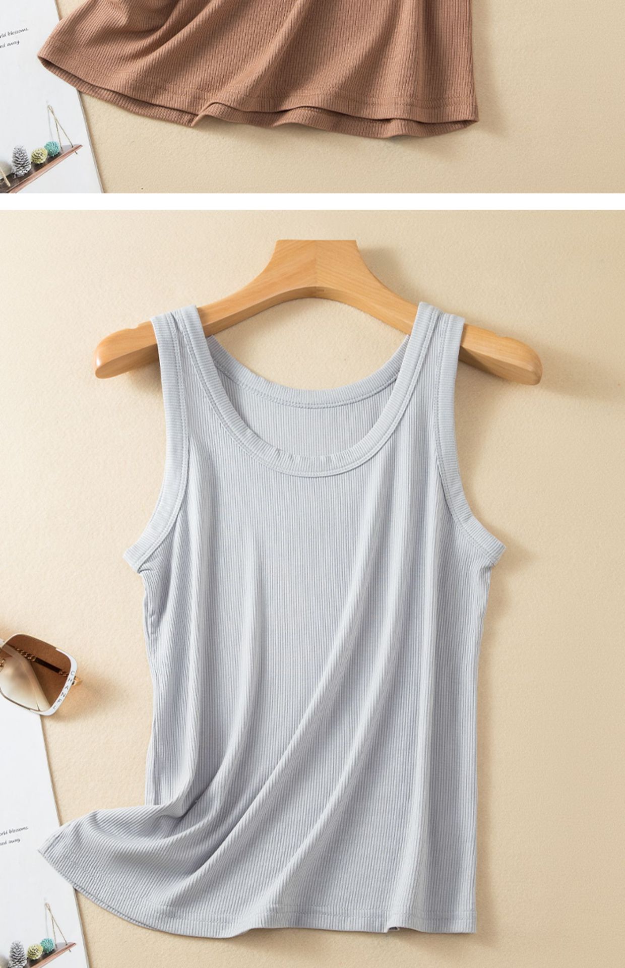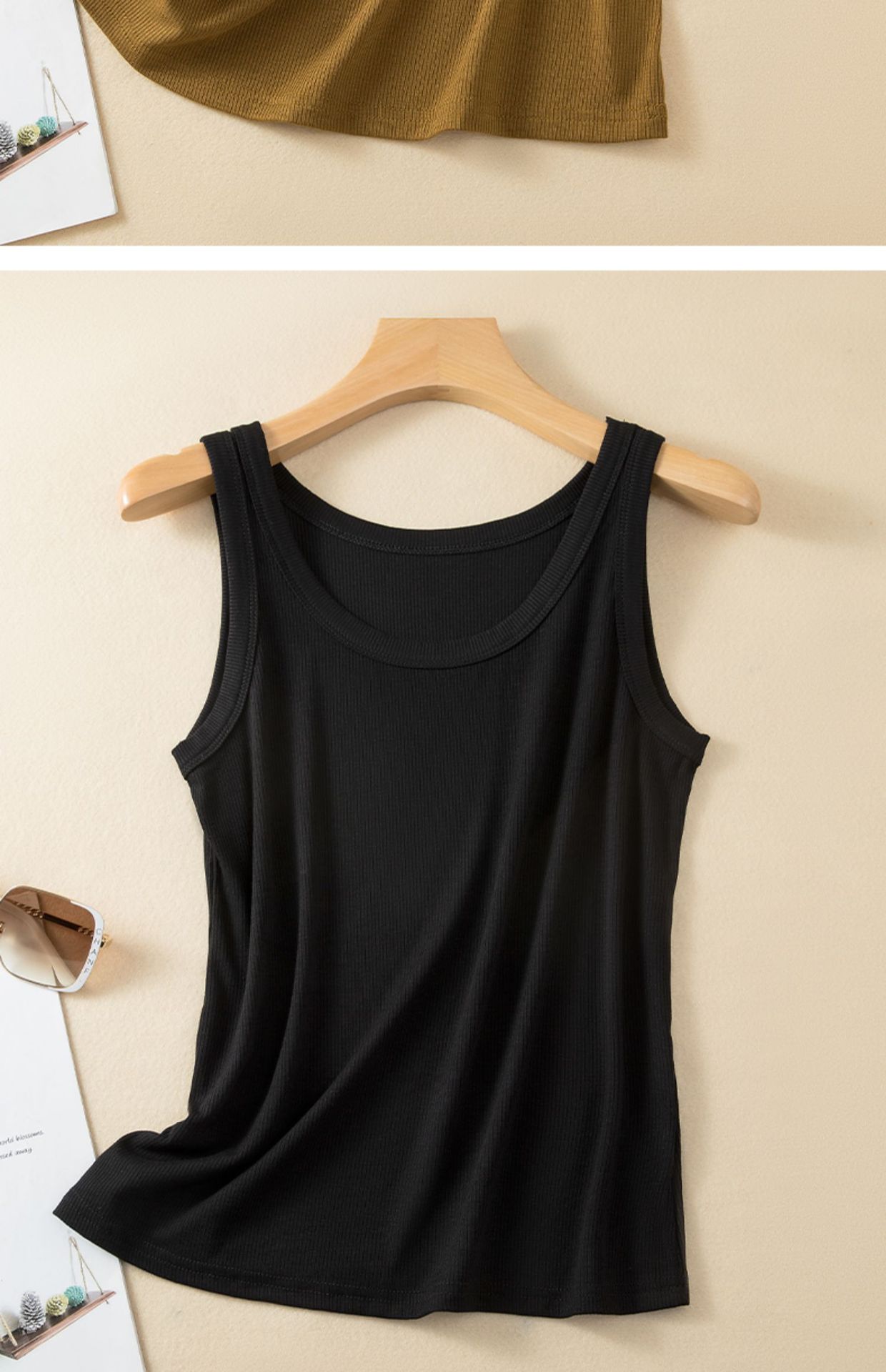 스레드 코튼 캐미솔 여성용 여름 민소매 이너베이스 셔츠 안티 러닝 라이트 커버링 Paramilis 겉옷 니트 탑
